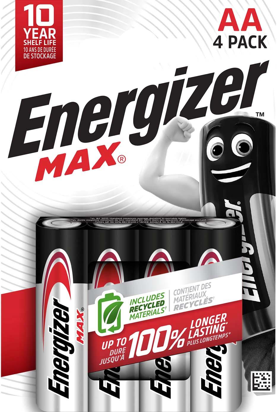 Features & Benefits:- Pack of 4 x 'AA' size Energizer Max alkaline batteries