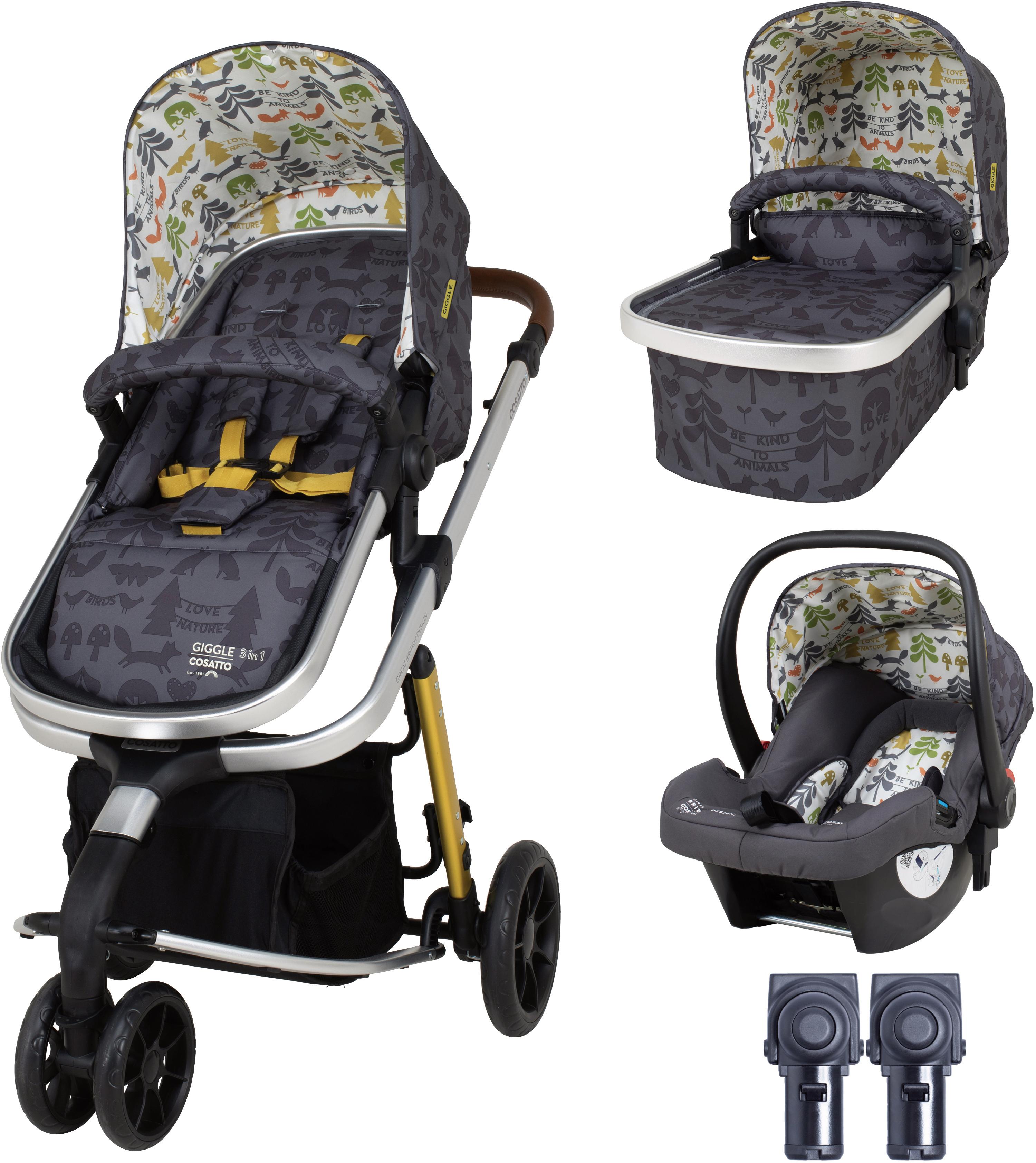 The Cosatto Giggle 3in1 Bundle is the essential travel system bundle and includes chassis, carrycot, seat unit, Group 0+ car seat, car seat adaptors and raincover.