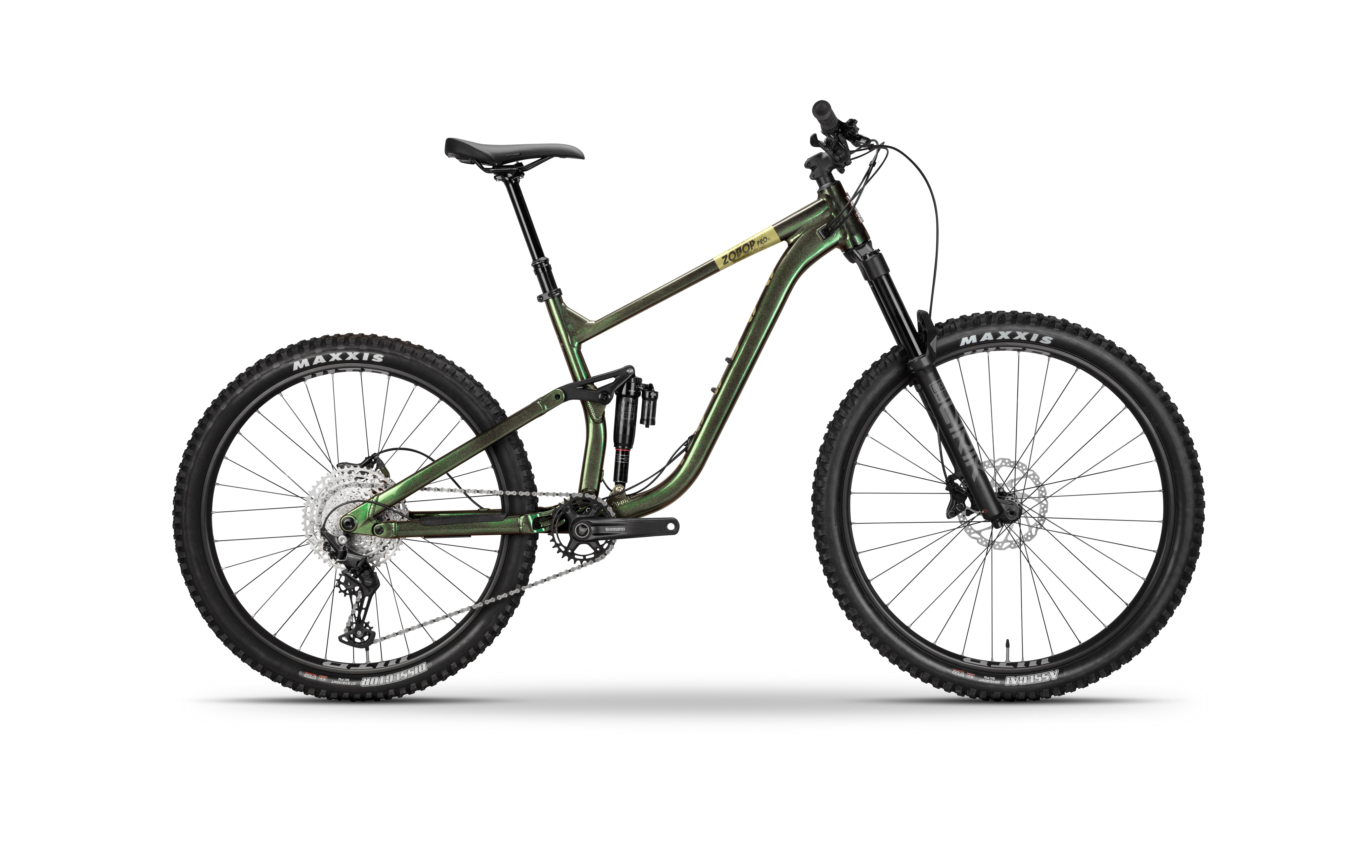 Fitted with premium rubber right out of the box, the Zobop Pro features a Maxxis Assegai 29x2.5" up front and a Maxxis Dissector 27.5x2.4" on the rear.