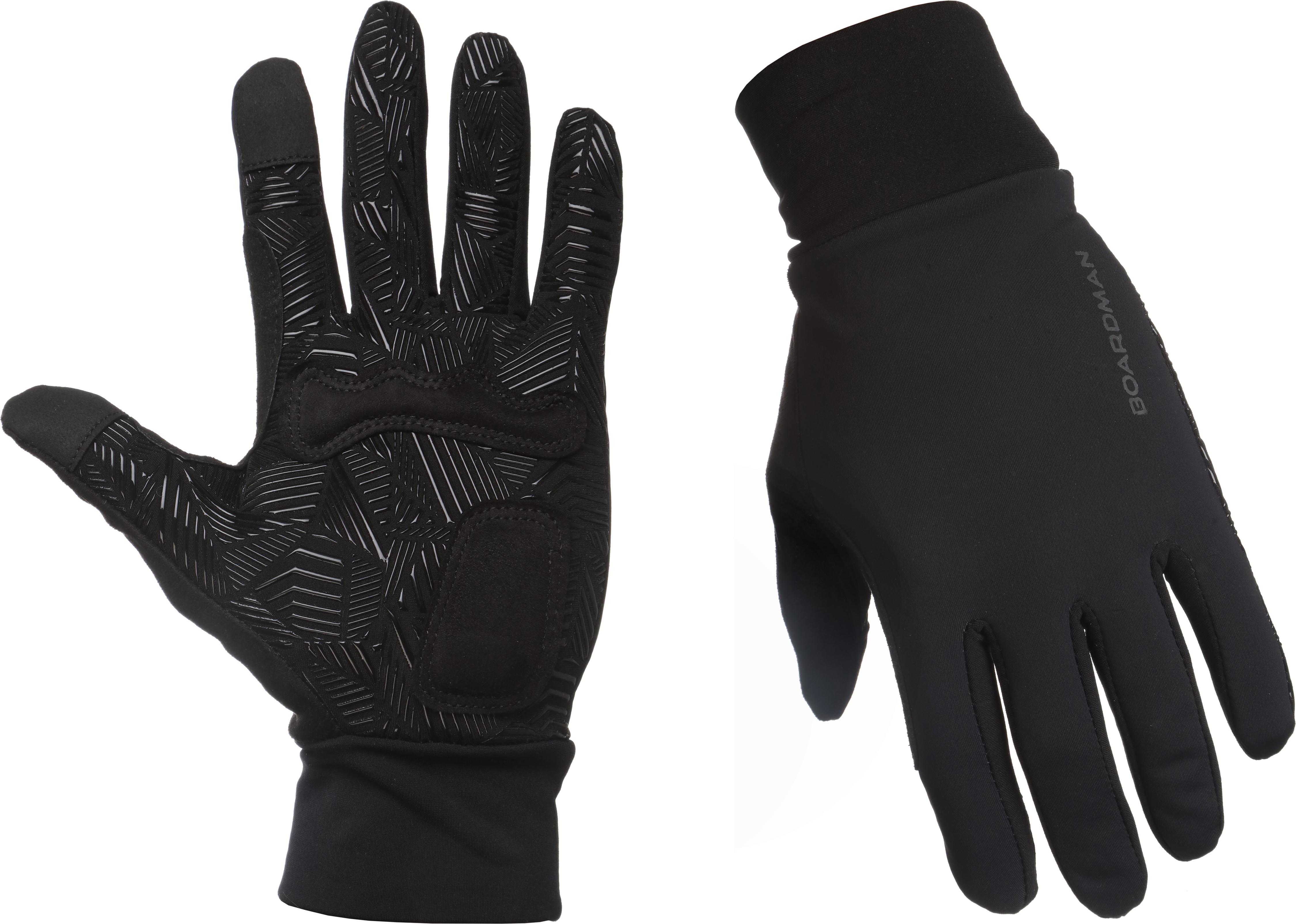 The Boardman Lightweight Gloves are an essential companion for everyday cycling. Crafted from windproof and water-resistant fabric, they feature a fleece-lined interior that keeps your hands warm on chilly rides while ensuring flexibility. The silicone print on the palm provides a secure grip on the handlebars, and the touchscreen-compatible fingertips let you stay connected without removing your gloves.