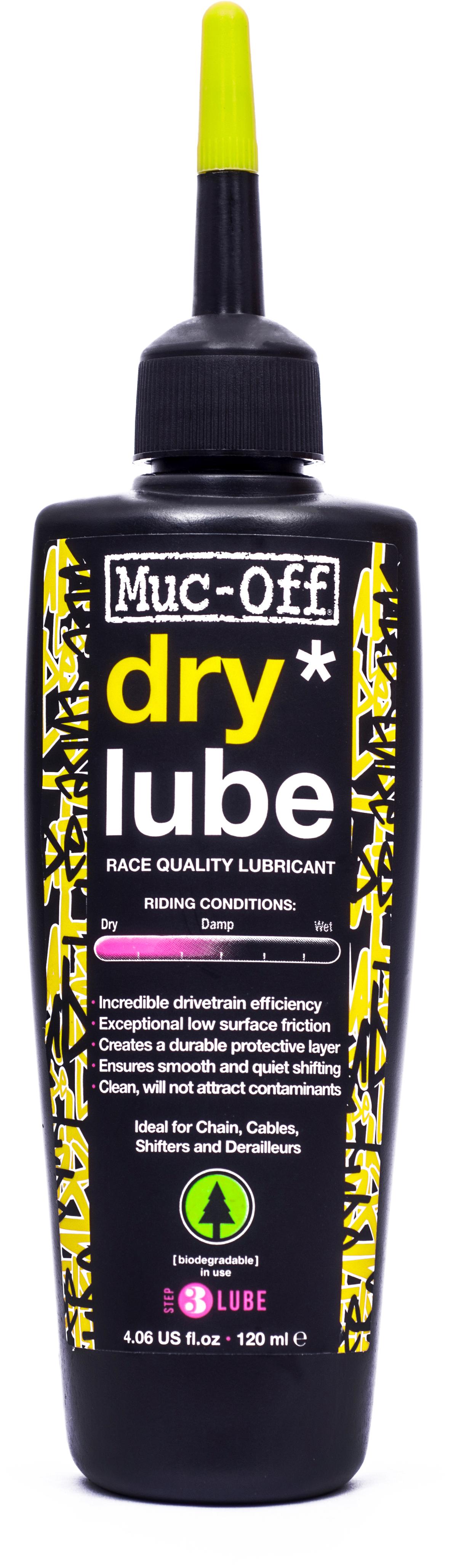 Durable and deep penetrating, the Muc-Off Dry Lube Bike Lubricant has been formulated to hold up in extreme conditions that other chain lubes wouldn't have a chance in. It boasts state of the art penetrative qualities, ensuring that the lube is driven deep into each chain link's core. There’s no need to worry because Muc-Off Dry Lube is biodegradable, so it’s safe for you, your bike and the planet.