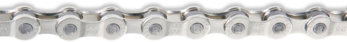 The SRAM PC-971 Bike Chain is compatible with 9 speed bikes and because of its PowerChain II technology and Powerlink Gold Chain Connectors it has super strength. The PowerChain 971 uses interior and exterior lids in the design of the PC-991, combined with nickel-coated outer and gray inner lids. For easy fitting and amazing durability, this chain has chrome push pins. Chain blades from Truvativ optimize the switching capacity as with all PowerChain II chains. It's a quality, reliable chain to have on your bike.