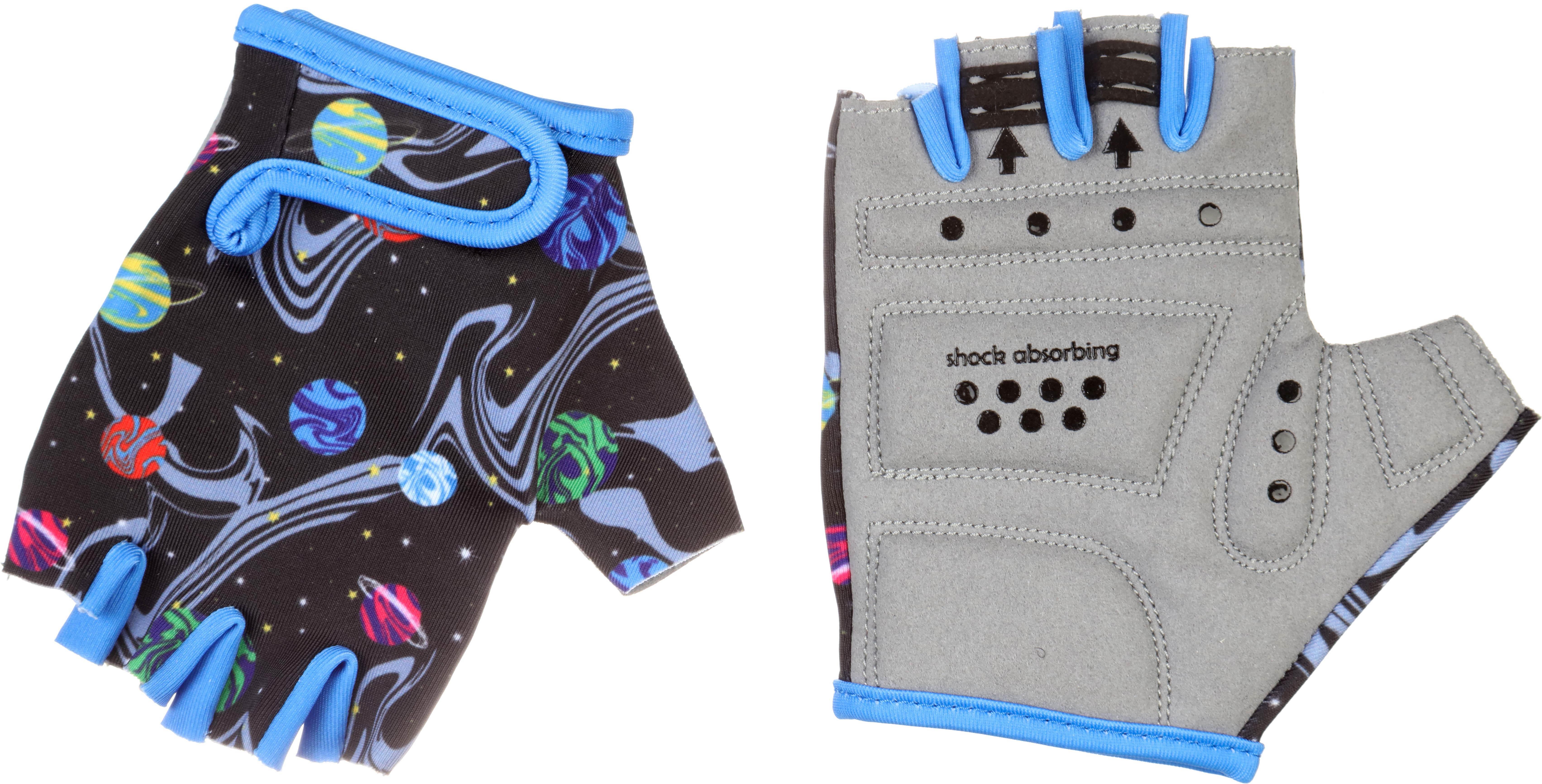 Adventure feels even better with our Space Print Gloves 3-6yrs. Foam padding and a synthetic leather palm keep little hands comfy and protected. The breathable, quick-dry fabric helps keep things cool, while silicone grip print adds control on the bars. Pull tabs make removal easy, and an adjustable wrist strap ensures a secure fit.