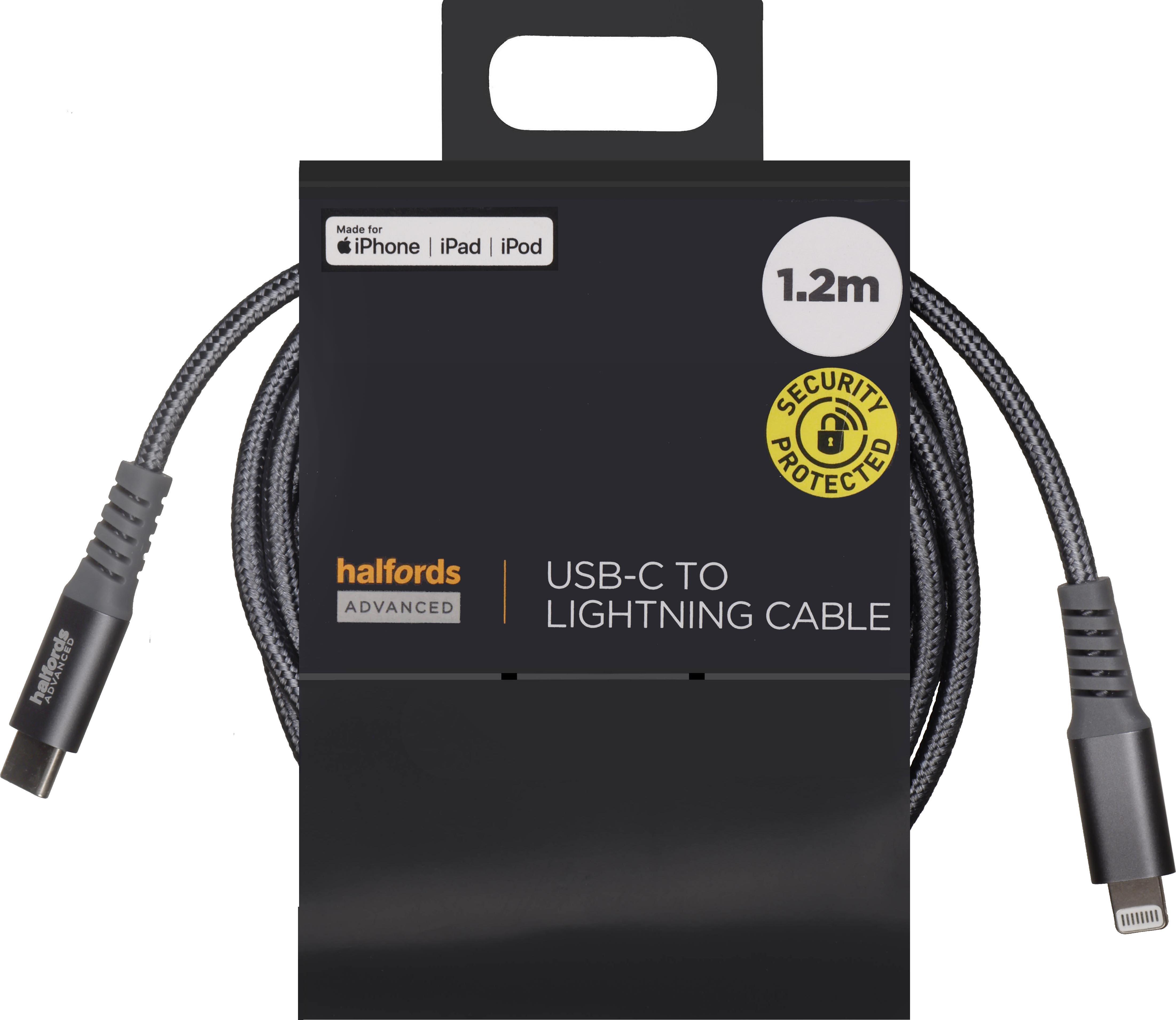 Halfords USB-C to Lightning 1.2m Charcoal
