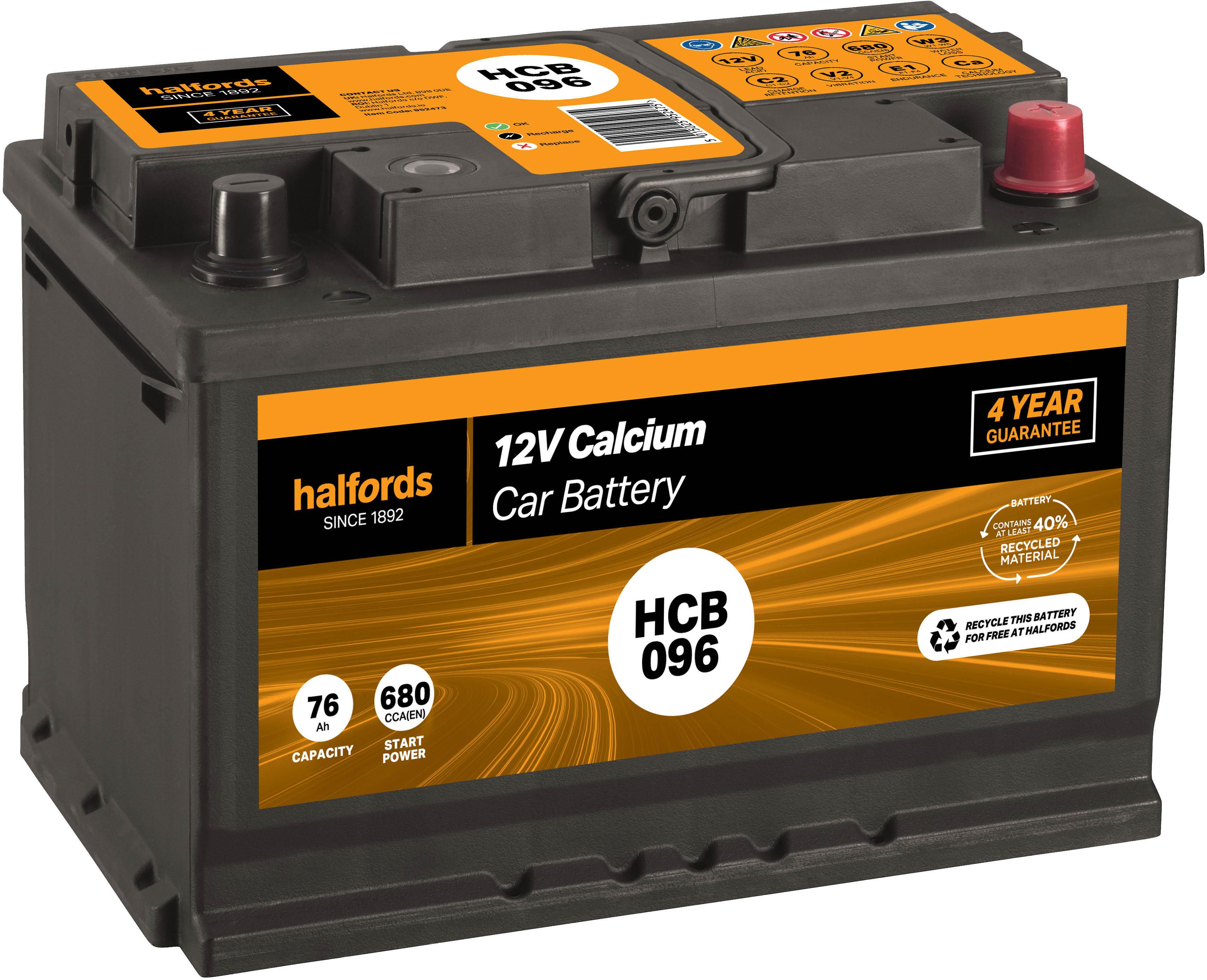The Halfords HCB096 Calcium 12V Car Battery 4 Year Guarantee comes fully charged and ready to fit.