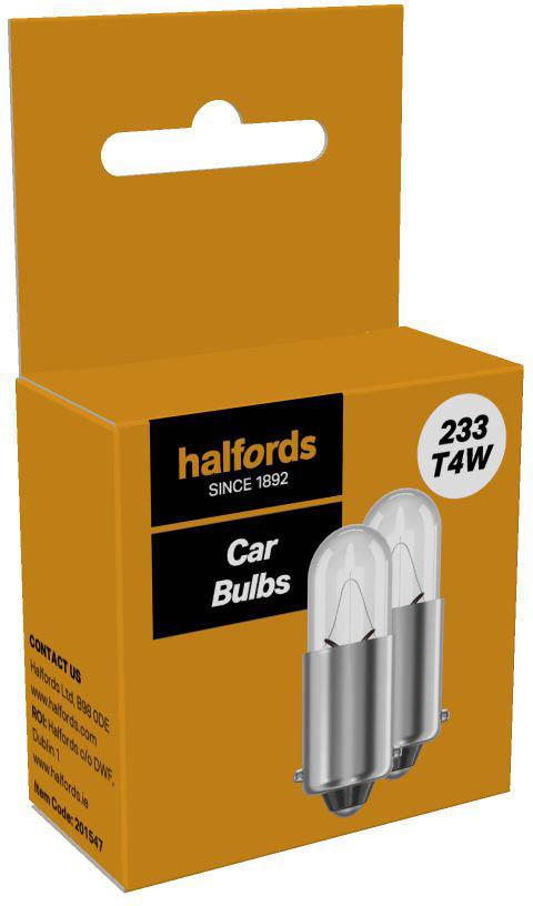 Halfords 233 T4W car bulb, developed to ECE regulation 37.Provides reliable performance and light output. Suitable for side and tail. It’s E-marked for road legal use in the UK and Europe.