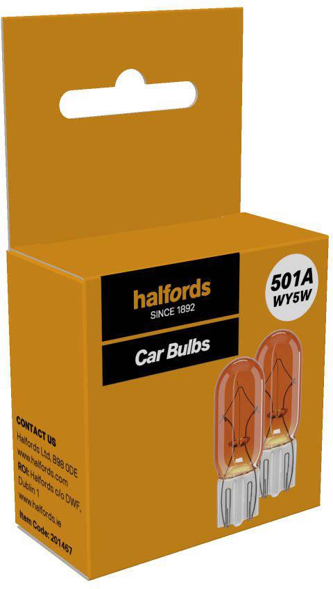 Halfords 501A WY5W car bulb, developed to ECE regulation 37. Suitable for indicator. Provides reliable performance and light output. It’s E-marked for road legal use in the UK and Europe.