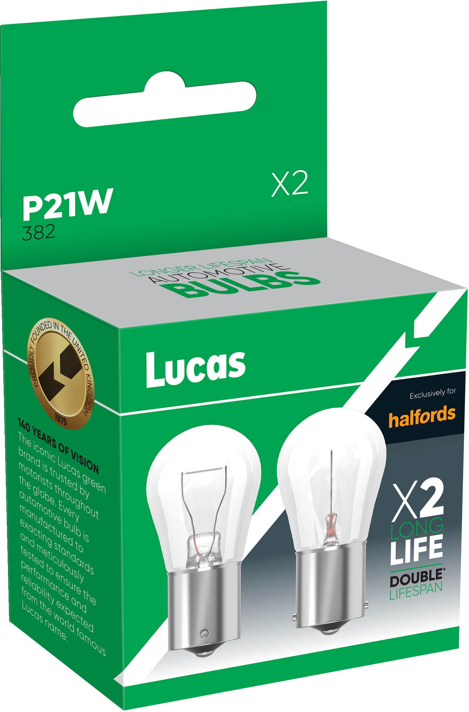 140 years of vision. The iconic Lucas green brand is trusted by motorists throughout the globe. Every automotive bulb is manufactured to exacting standards and meticulously tested to ensure the performance and reliability expected from the world famous Lucas name.