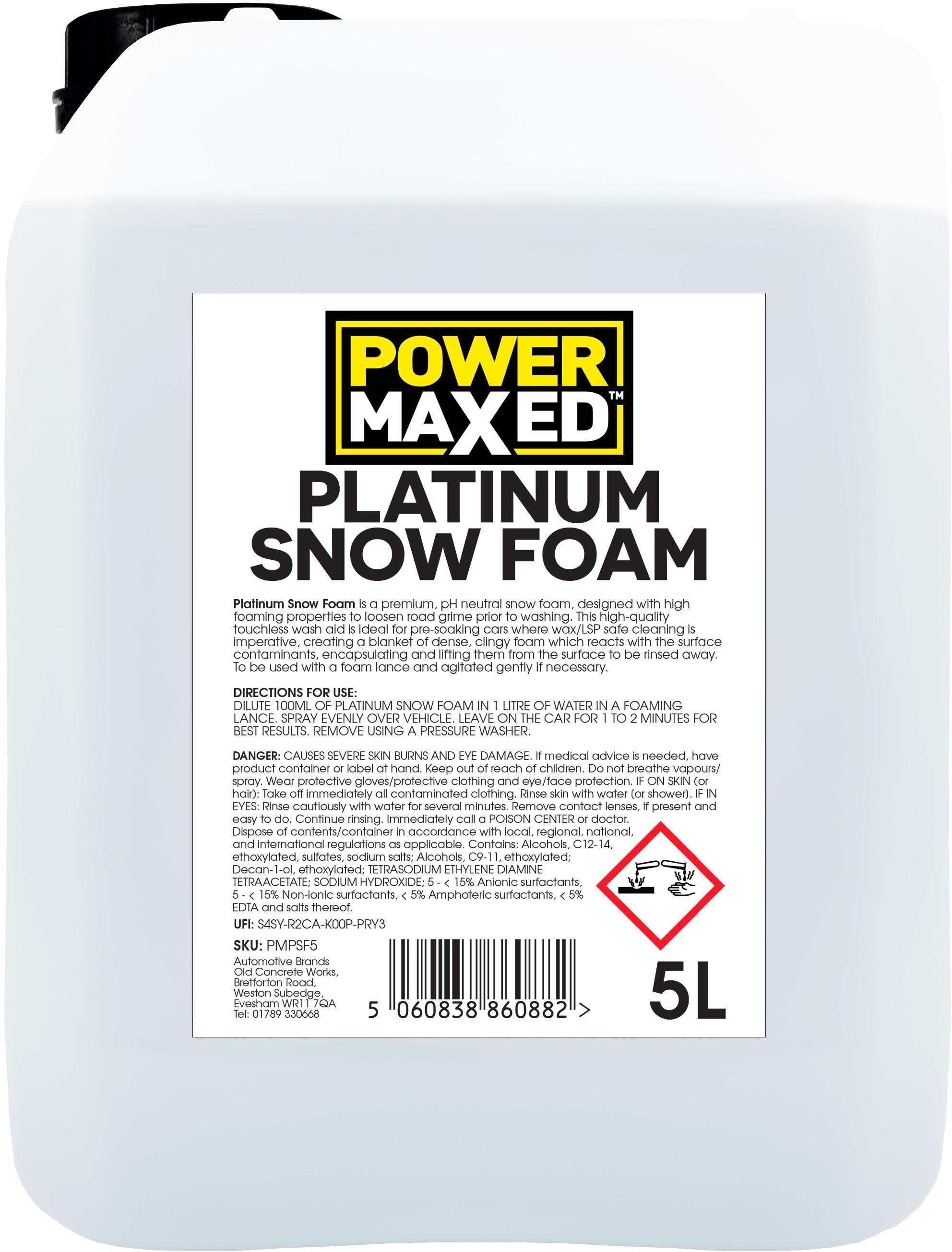 Power Maxed Platinum Snow Foam is an advanced pre-wash formula designed for detailers and enthusiasts who demand the highest level of cleaning performance. Its ultra-thick foam blankets the vehicle, clinging to surfaces to break down stubborn grime, traffic film, and road contaminants without stripping waxes, sealants, or ceramic coatings.