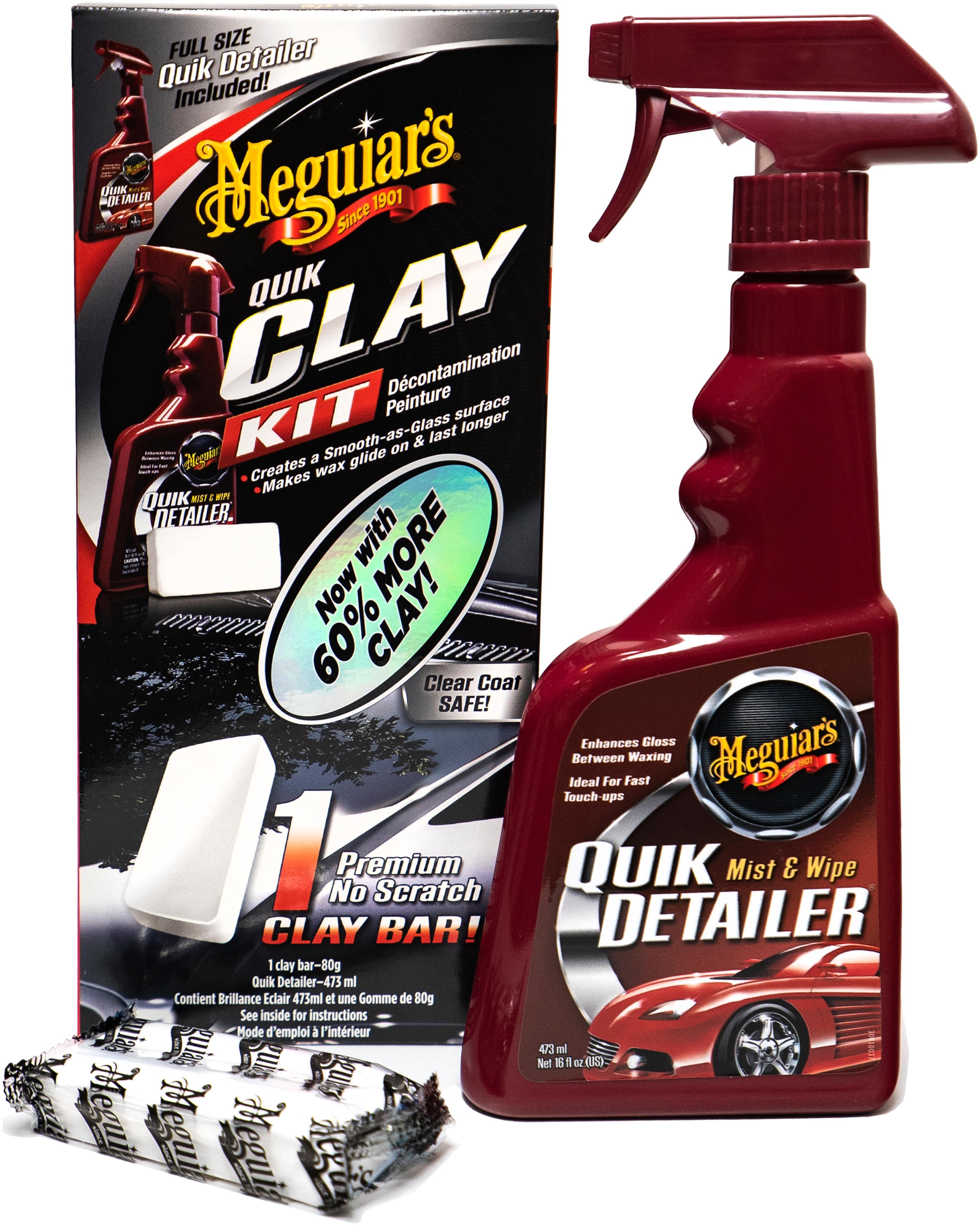 Quik Detailer: The Meguiars Quik Detailer 473ml can be used anytime, anywhere to remove fresh contaminants before they bond or etch into your paint finish. Used as a clay lubricant, Quik Detailer prevents the clay bar from sticking to the paint.
