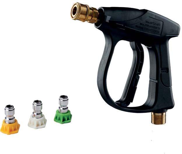 This high-pressure short spray gun kit has everything you need for powerful cleaning. Simply attach it to your pressure washer with the quick attachments provided and start washing. No matter what you’re cleaning, the 15°, 25°, and 40° metal fan nozzles mean you’ll always have the right tool for the job.