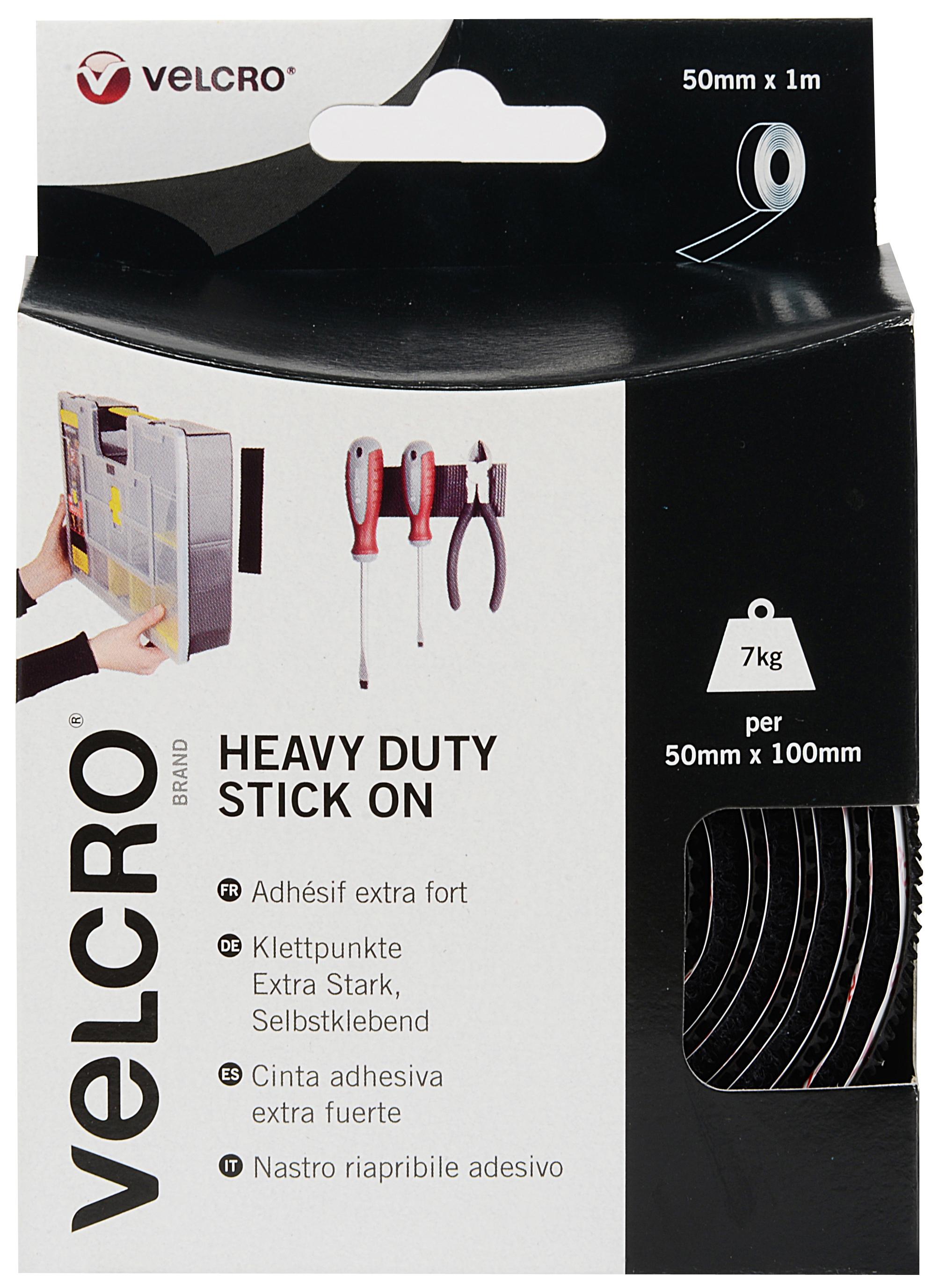 The industrial strength hook-and-loop fastener provides a strong holding power designed for heavy-duty applications; it safely holds up to 7kg per 50mm x 100mm.