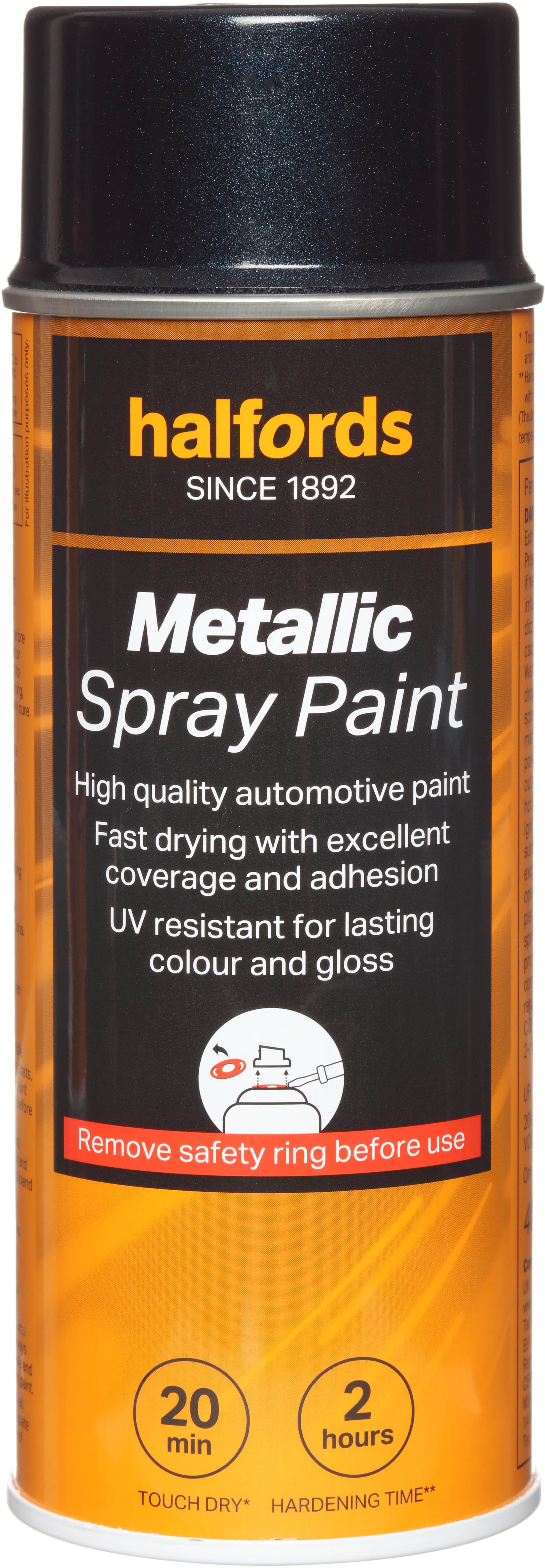 The Halfords Blue Metallic Spray Paint is an automotive-grade spray paint. It’s acrylic-based, and can be used on almost all vehicle finishes as well as steel, aluminium, most plastics, wood & stone.This high-quality paint is fast-drying to make the job as easy and mess-free as possible, giving you excellent coverage and adhesion when used with a primer.