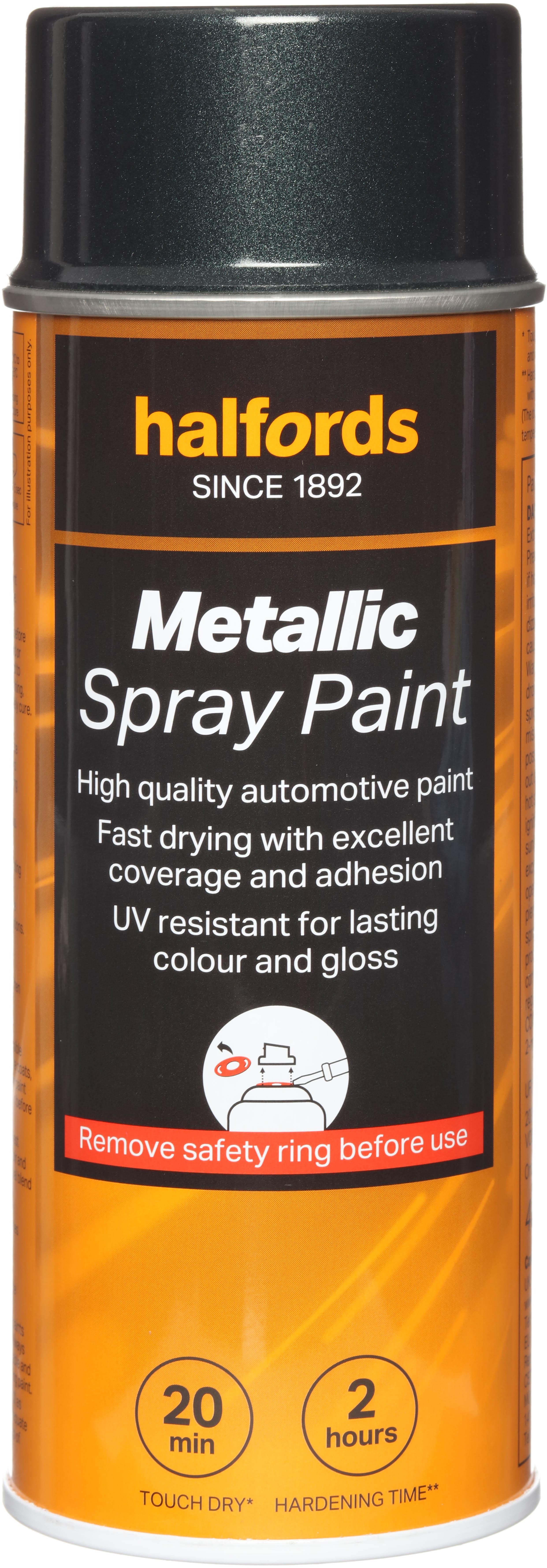 The Halfords Green Metallic Spray Paint is an automotive-grade spray paint. It’s acrylic-based, and can be used on almost all vehicle finishes as well as steel, aluminium, most plastics, wood & stone.This car spray paint helps you get a professional finish when repairing damage or respraying panels, thanks to the colour match system. We pair your vehicle’s colour code to one of our colour formulas to give you a great match.