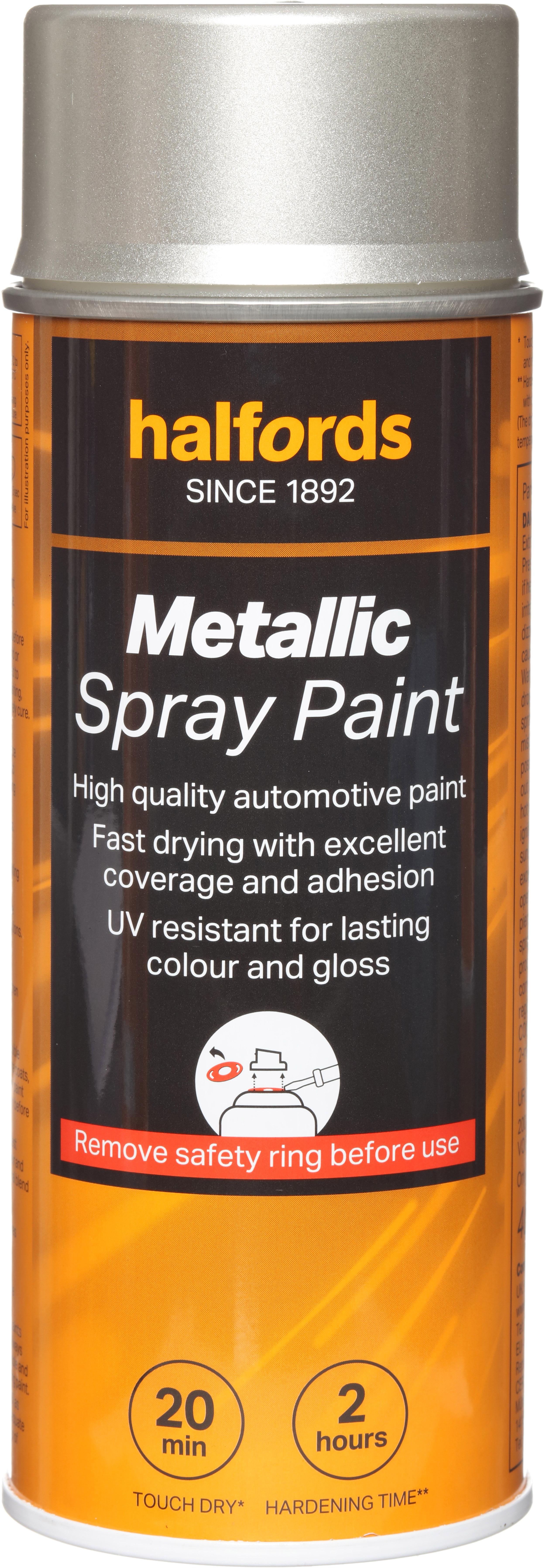 The Halfords Silver Metallic Spray Paint is a multi-use automotive-grade spray paint, which can be safely used on surfaces like steel, aluminium, wood, stone, and most plastics with the right primer.