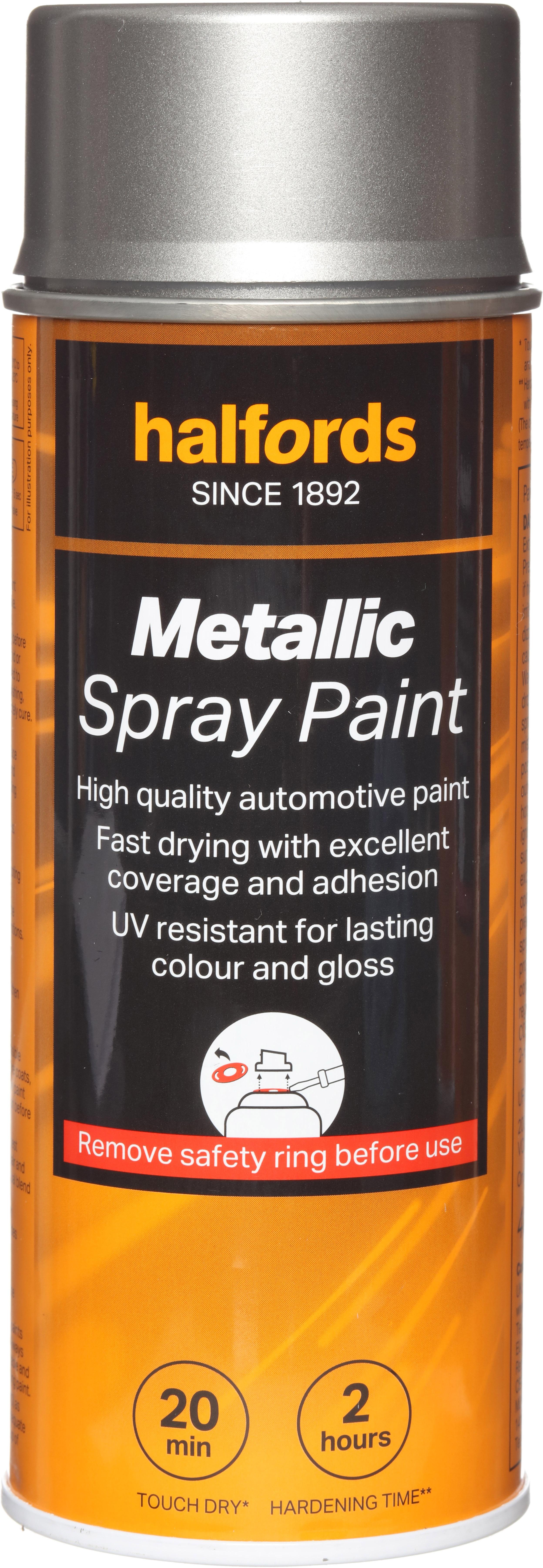 The Halfords Silver Metallic Spray Paint is a multi-use automotive-grade spray paint, which can be safely used on surfaces like steel, aluminium, wood, stone, and most plastics with the right primer.