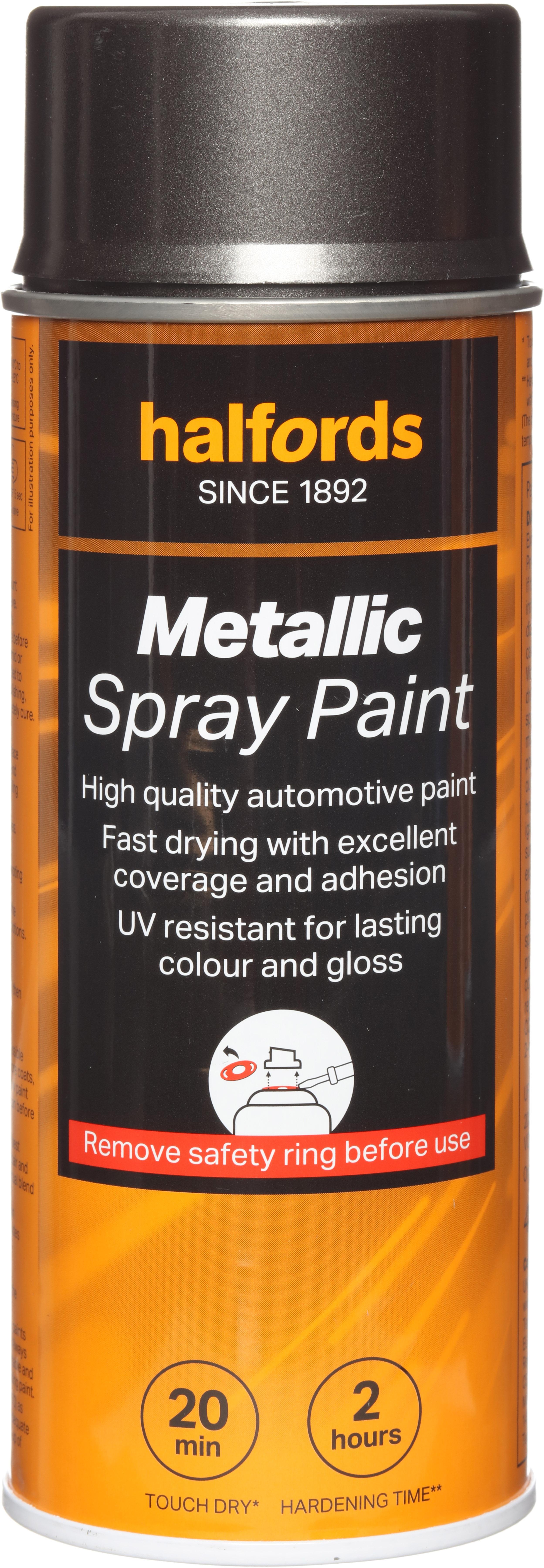 The Halfords Grey Metallic Spray Paint is an automotive-grade spray paint. It’s acrylic-based, and can be used on almost all vehicle finishes as well as steel, aluminium, most plastics, wood & stone.Repair damage and bring faded panels back to life with this car spray paint. It has excellent coverage and filling properties to give you a smooth finish, and adheres flawlessly with the right primer.