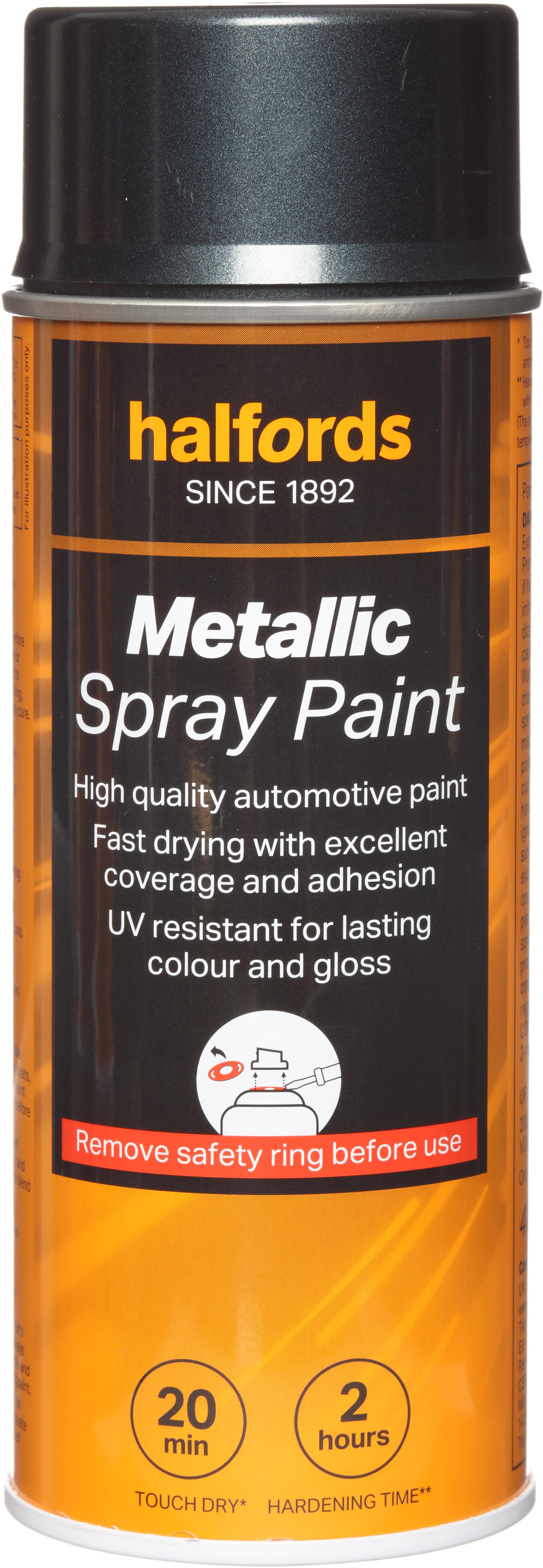 The Halfords Grey Metallic Spray Paint is an automotive-grade spray paint. It’s acrylic-based, and can be used on almost all vehicle finishes as well as steel, aluminium, most plastics, wood & stone.