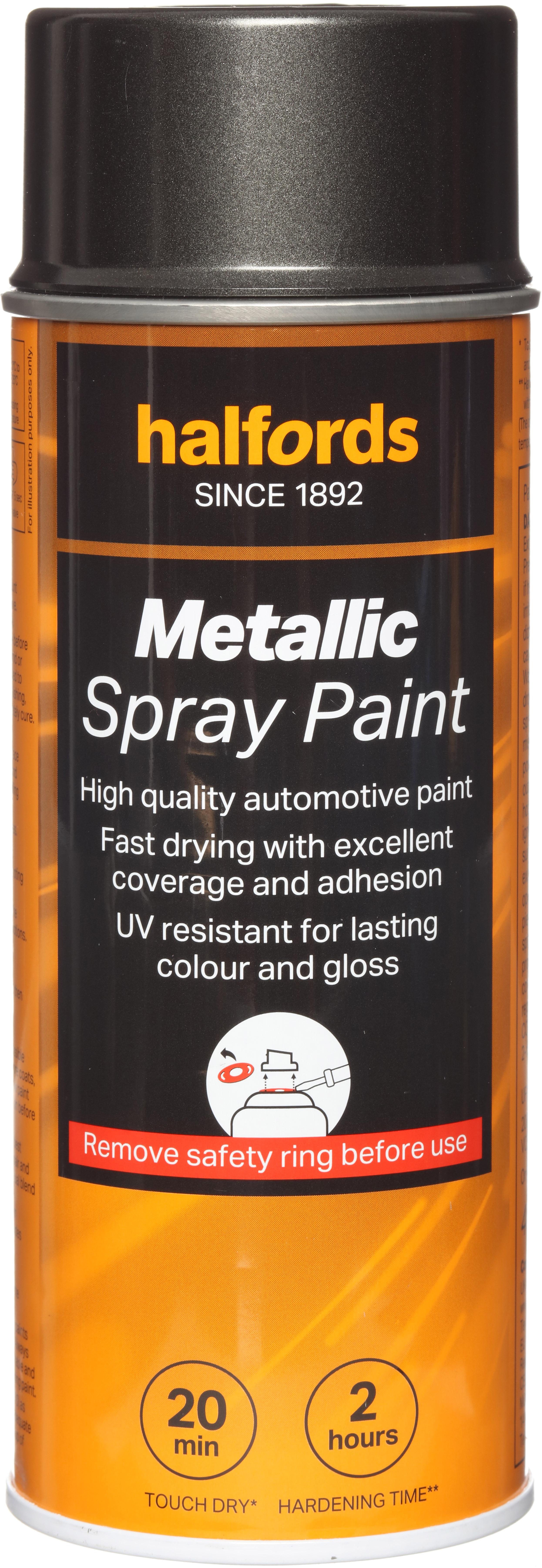 The Halfords Grey Metallic Spray Paint is an automotive-grade spray paint. It’s acrylic-based, and can be used on almost all vehicle finishes as well as steel, aluminium, most plastics, wood & stone.