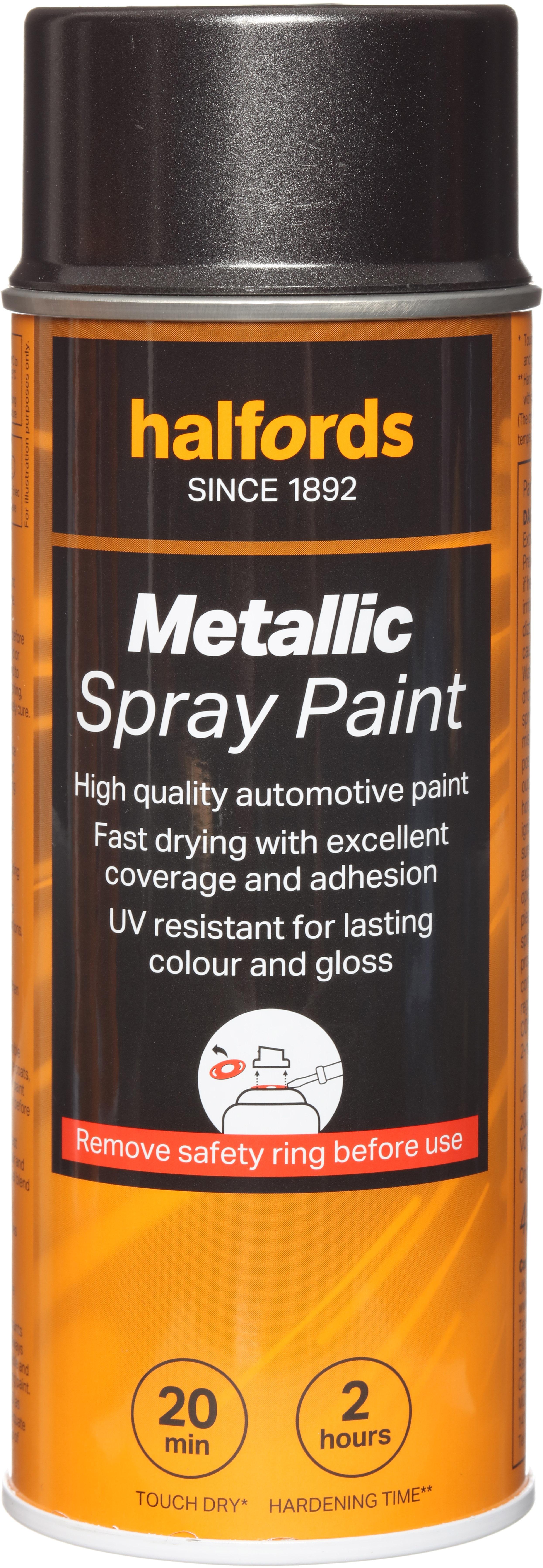 The Halfords Grey Metallic Spray Paint is an automotive-grade spray paint. It’s acrylic-based, and can be used on almost all vehicle finishes as well as steel, aluminium, most plastics, wood & stone.Repair damage and bring faded panels back to life with this car spray paint. It has excellent coverage and filling properties to give you a smooth finish, and adheres flawlessly with the right primer.
