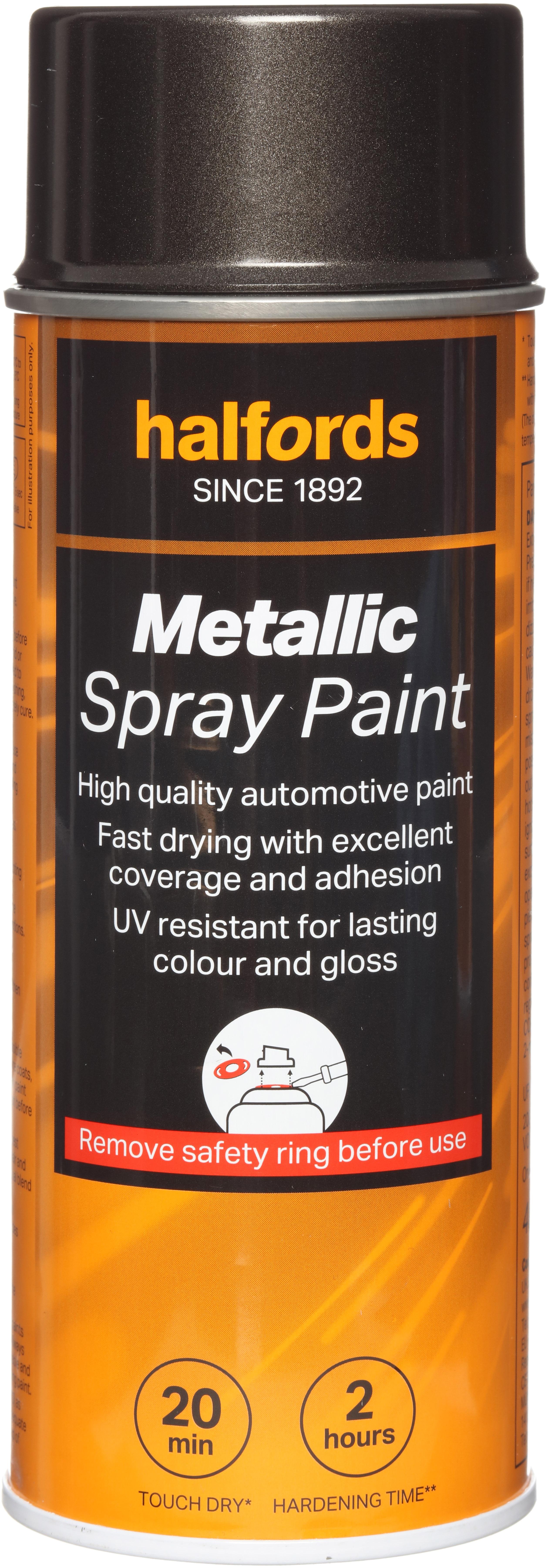The Halfords Grey Metallic Spray Paint is an automotive-grade spray paint. It’s acrylic-based, and can be used on almost all vehicle finishes as well as steel, aluminium, most plastics, wood & stone.Repair damage and bring faded panels back to life with this car spray paint. It has excellent coverage and filling properties to give you a smooth finish, and adheres flawlessly with the right primer.