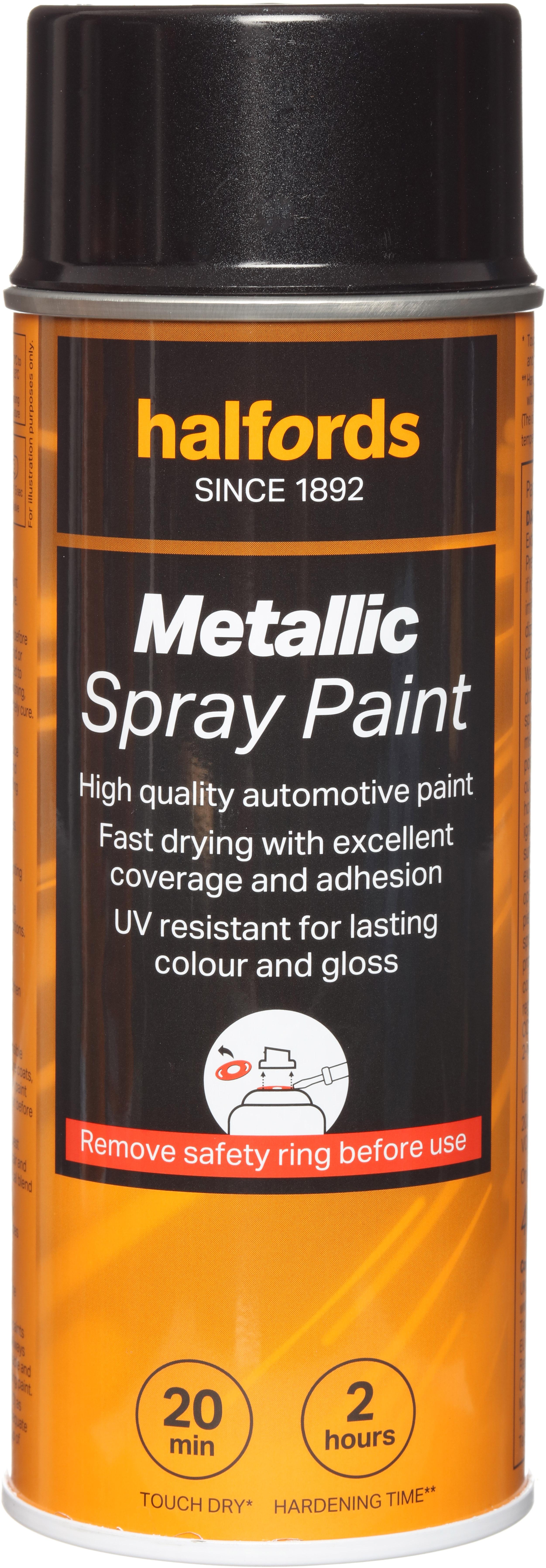 The Halfords Black Metallic Spray Paint is an acrylic-based spray paint, perfect for repairing damage and respraying car panels. It can also be used on aluminium, steel, wood, stone, and most plastics with an appropriate primer.This car spray paint helps you get a professional finish when repairing damage or respraying panels, thanks to the colour match system. We pair your vehicle’s colour code to one of our colour formulas to give you a great match.