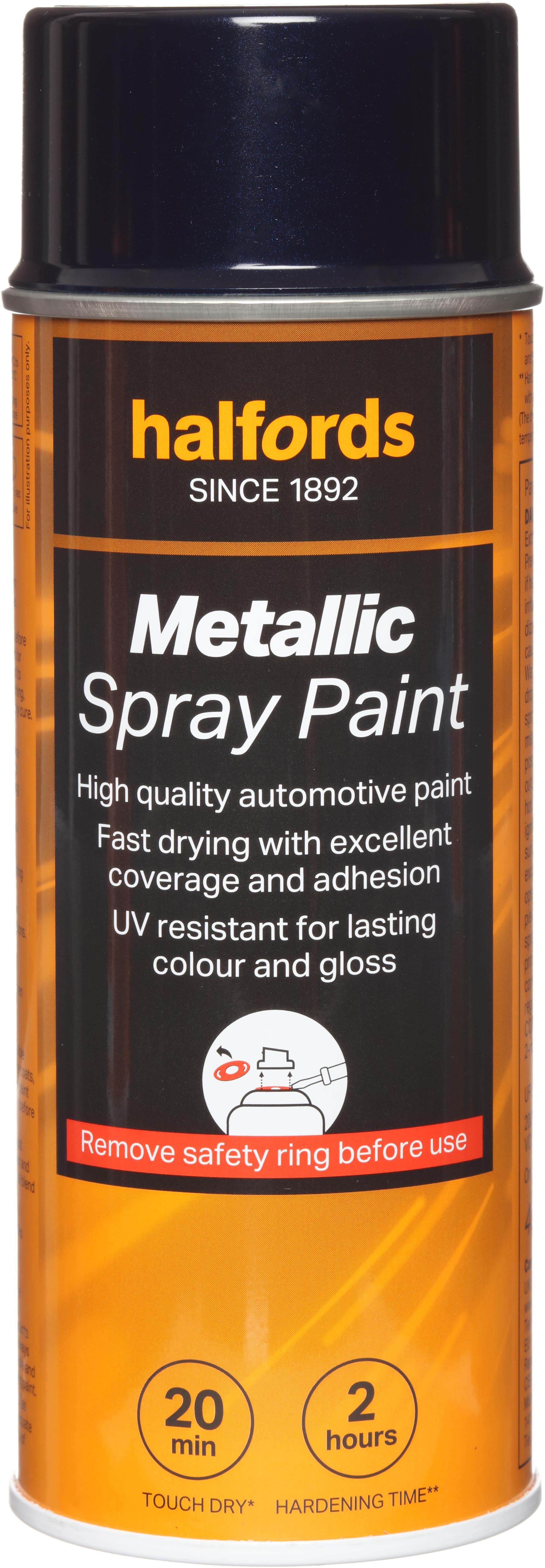 The Halfords Blue Metallic Spray Paint is an automotive-grade spray paint. It’s acrylic-based, and can be used on almost all vehicle finishes as well as steel, aluminium, most plastics, wood & stone.This high-quality paint is fast-drying to make the job as easy and mess-free as possible, giving you excellent coverage and adhesion when used with a primer.