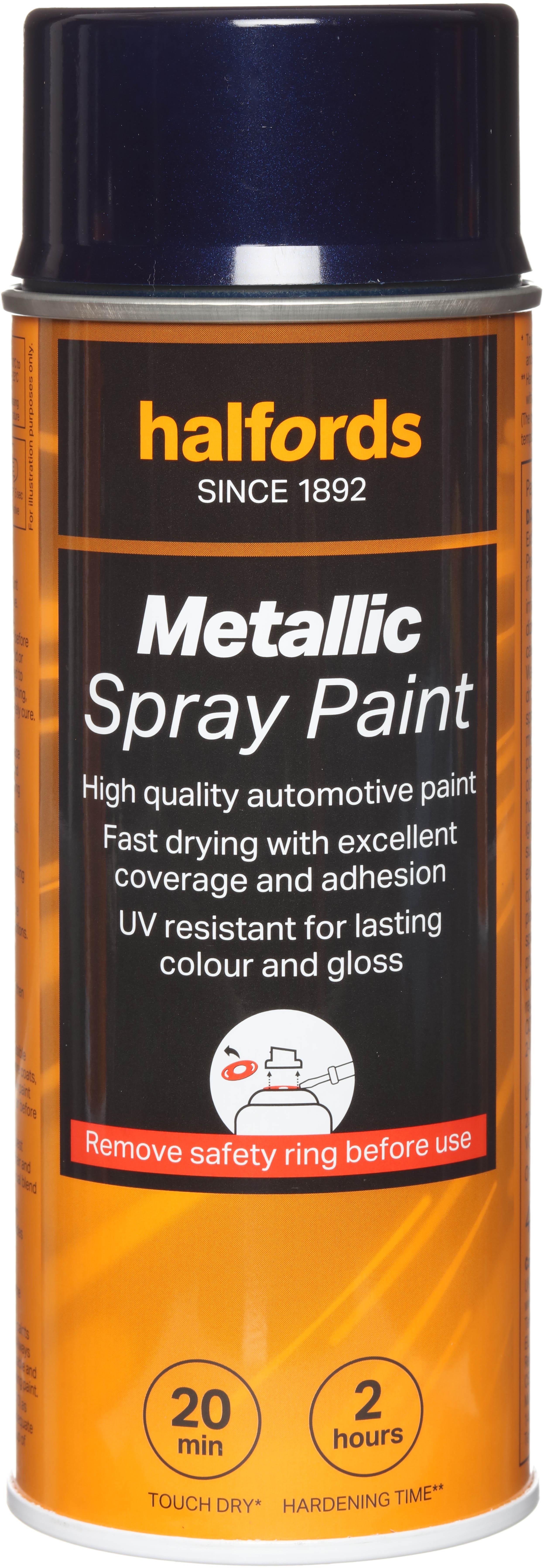 The Halfords Blue Metallic Spray Paint is an automotive-grade spray paint. It’s acrylic-based, and can be used on almost all vehicle finishes as well as steel, aluminium, most plastics, wood & stone.This high-quality paint is fast-drying to make the job as easy and mess-free as possible, giving you excellent coverage and adhesion when used with a primer.