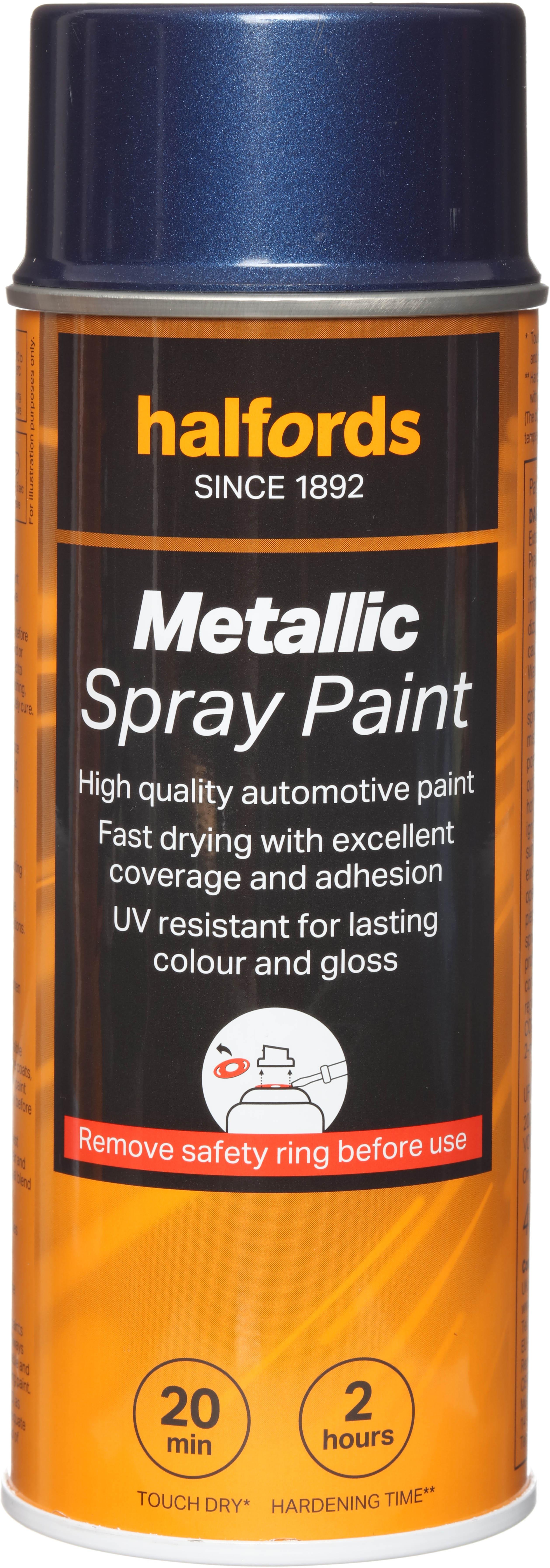 The Halfords Blue Metallic Spray Paint is an automotive-grade spray paint. It’s acrylic-based, and can be used on almost all vehicle finishes as well as steel, aluminium, most plastics, wood & stone.