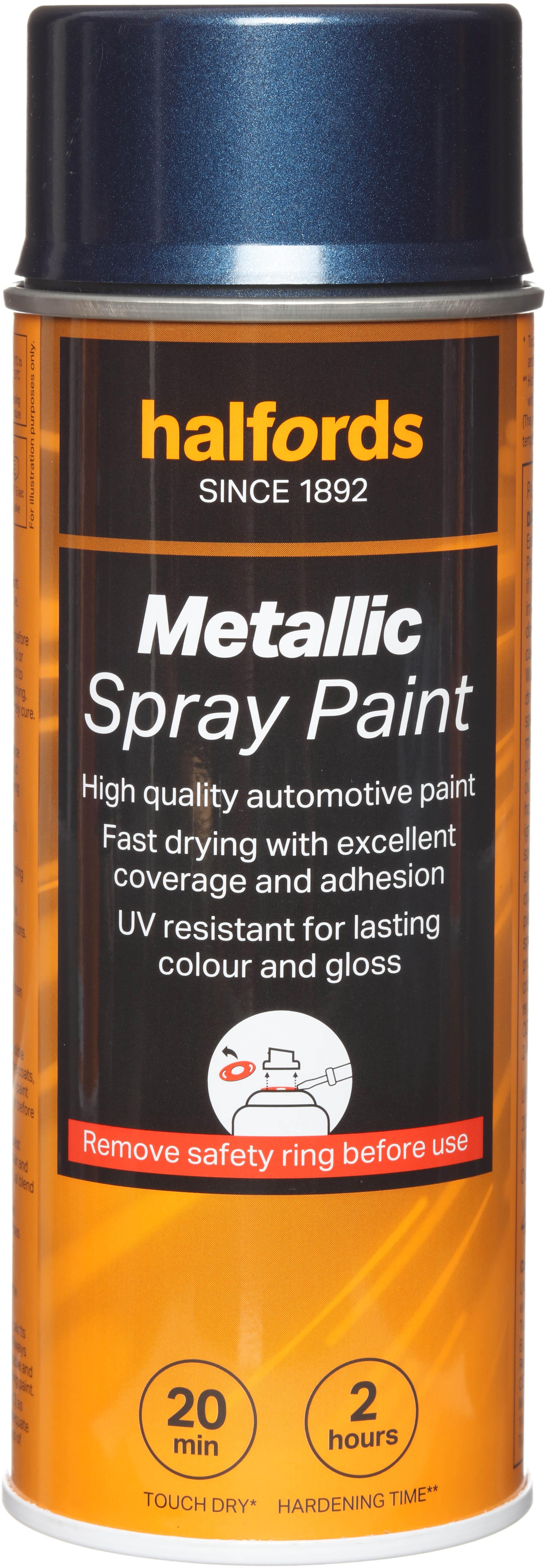 The Halfords Blue Metallic Spray Paint is an automotive-grade spray paint. It’s acrylic-based, and can be used on almost all vehicle finishes as well as steel, aluminium, most plastics, wood & stone.This high-quality paint is fast-drying to make the job as easy and mess-free as possible, giving you excellent coverage and adhesion when used with a primer.