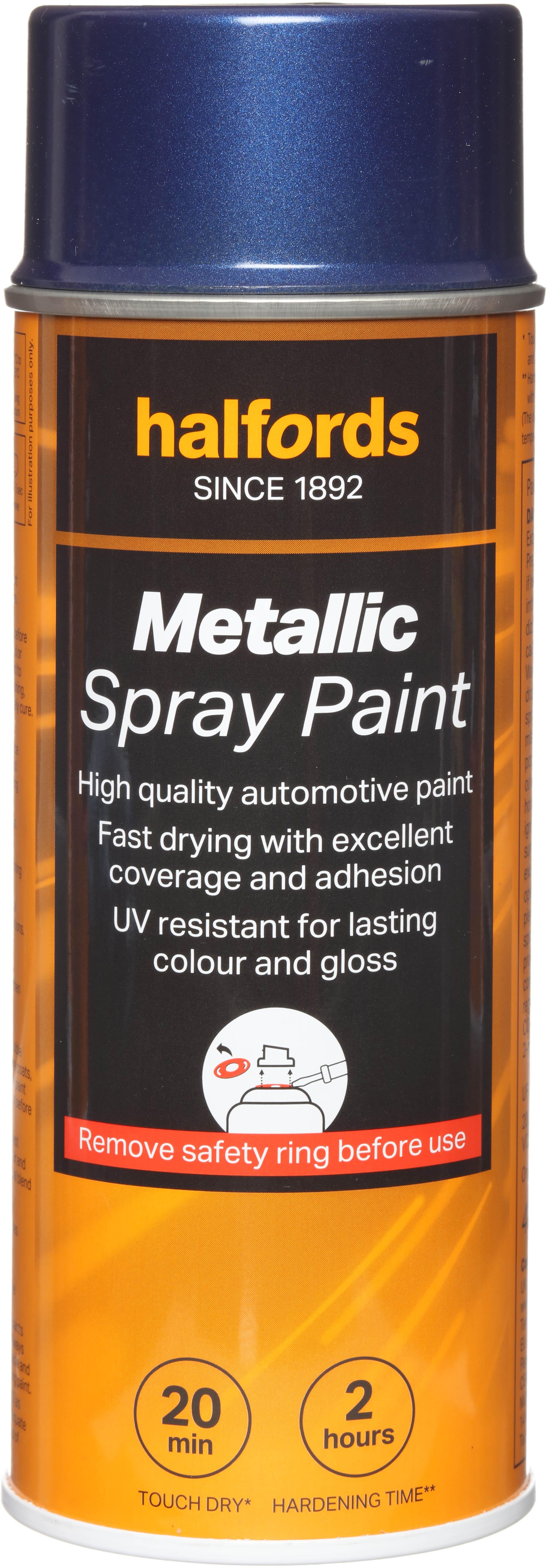 The Halfords Blue Metallic Spray Paint is an automotive-grade spray paint. It’s acrylic-based, and can be used on almost all vehicle finishes as well as steel, aluminium, most plastics, wood & stone.This high-quality paint is fast-drying to make the job as easy and mess-free as possible, giving you excellent coverage and adhesion when used with a primer.