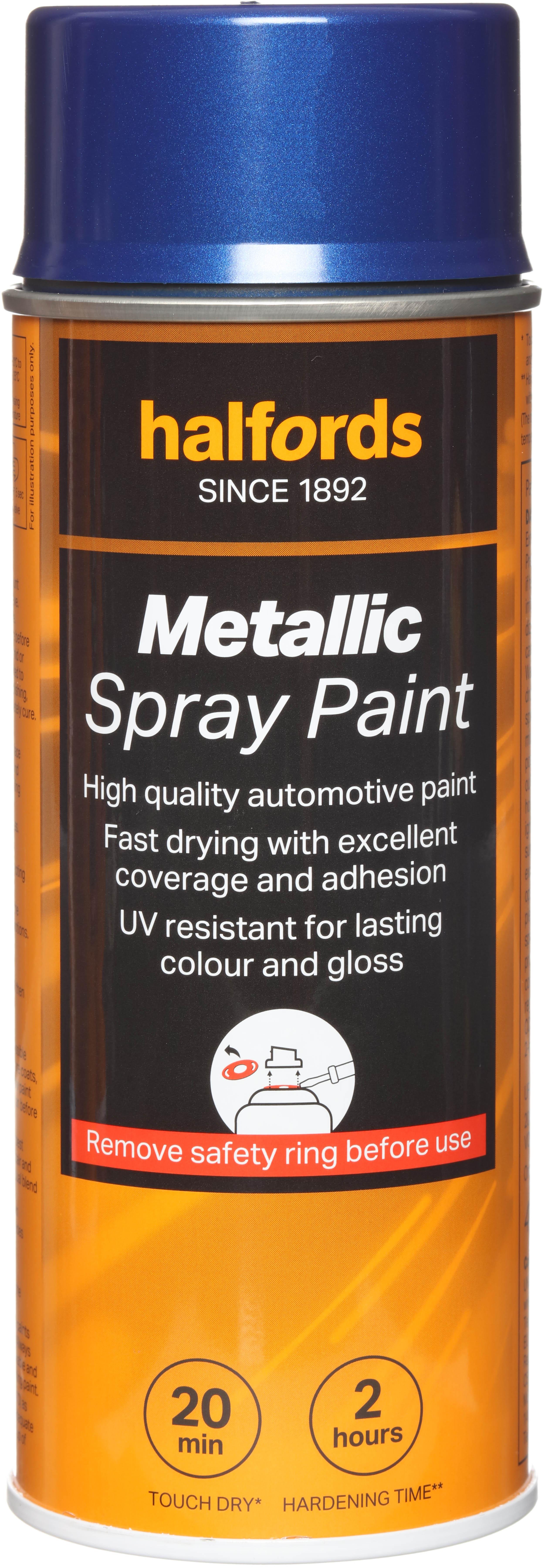 The Halfords Blue Metallic Spray Paint is an automotive-grade spray paint. It’s acrylic-based, and can be used on almost all vehicle finishes as well as steel, aluminium, most plastics, wood & stone.This high-quality paint is fast-drying to make the job as easy and mess-free as possible, giving you excellent coverage and adhesion when used with a primer.