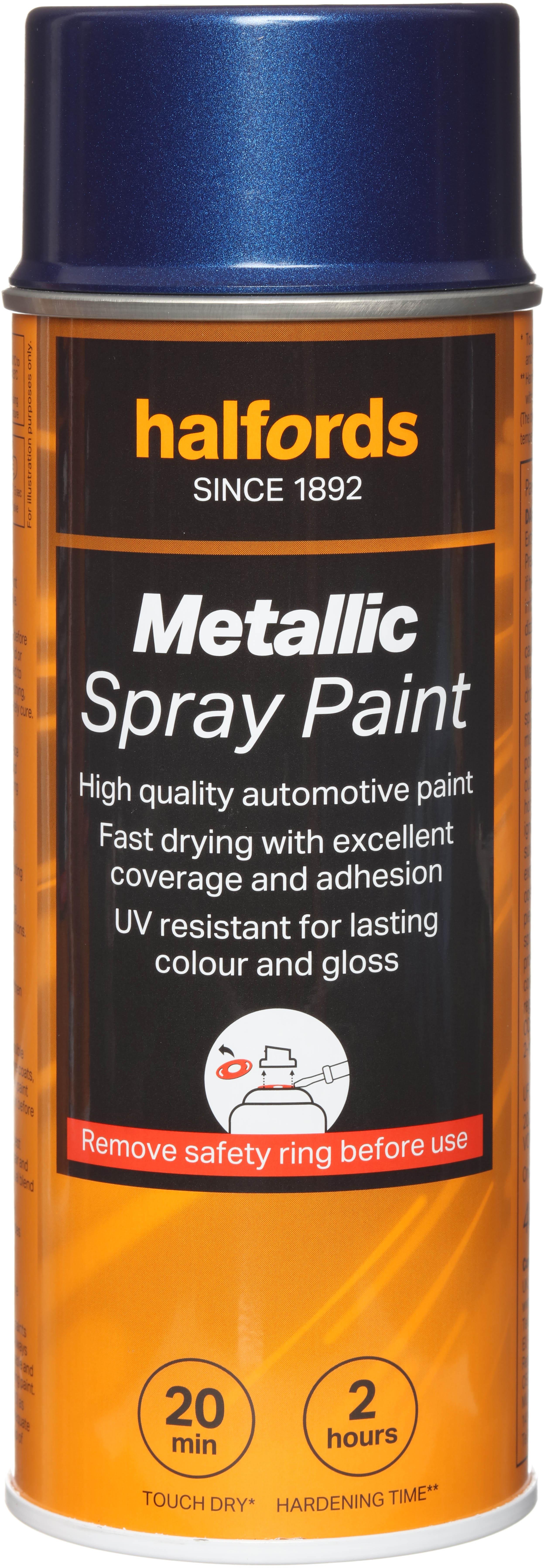 The Halfords Blue Metallic Spray Paint is an automotive-grade spray paint. It’s acrylic-based, and can be used on almost all vehicle finishes as well as steel, aluminium, most plastics, wood & stone.This high-quality paint is fast-drying to make the job as easy and mess-free as possible, giving you excellent coverage and adhesion when used with a primer.