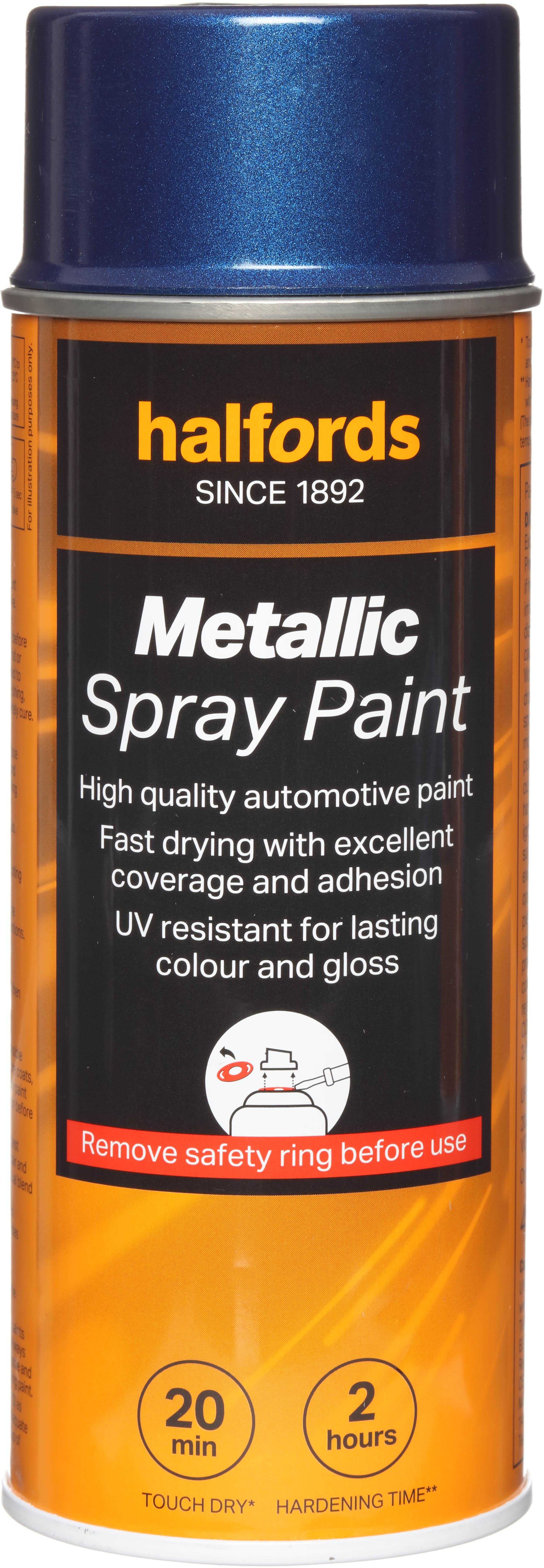 The Halfords Blue Metallic Spray Paint is an automotive-grade spray paint. It’s acrylic-based, and can be used on almost all vehicle finishes as well as steel, aluminium, most plastics, wood & stone.This high-quality paint is fast-drying to make the job as easy and mess-free as possible, giving you excellent coverage and adhesion when used with a primer.