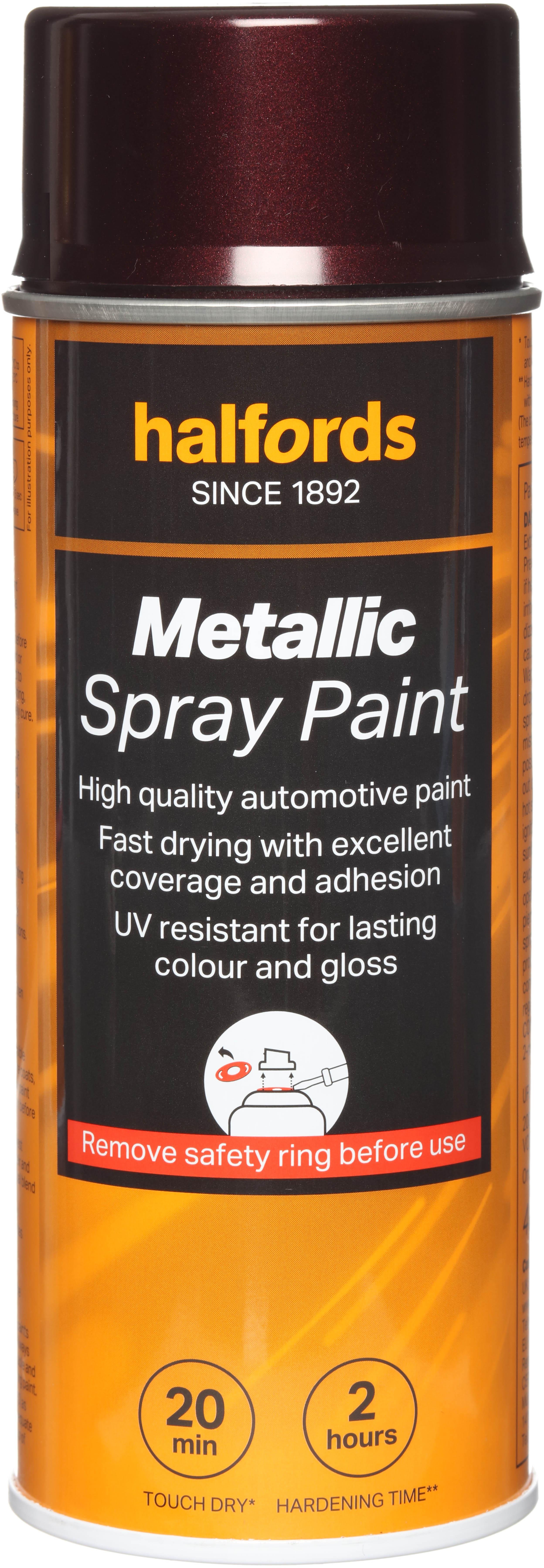 The Halfords Red Metallic Spray Paint is an acrylic-based spray paint, perfect for repairing damage and respraying car panels. It can also be used on aluminium, steel, wood, stone, and most plastics with an appropriate primer.