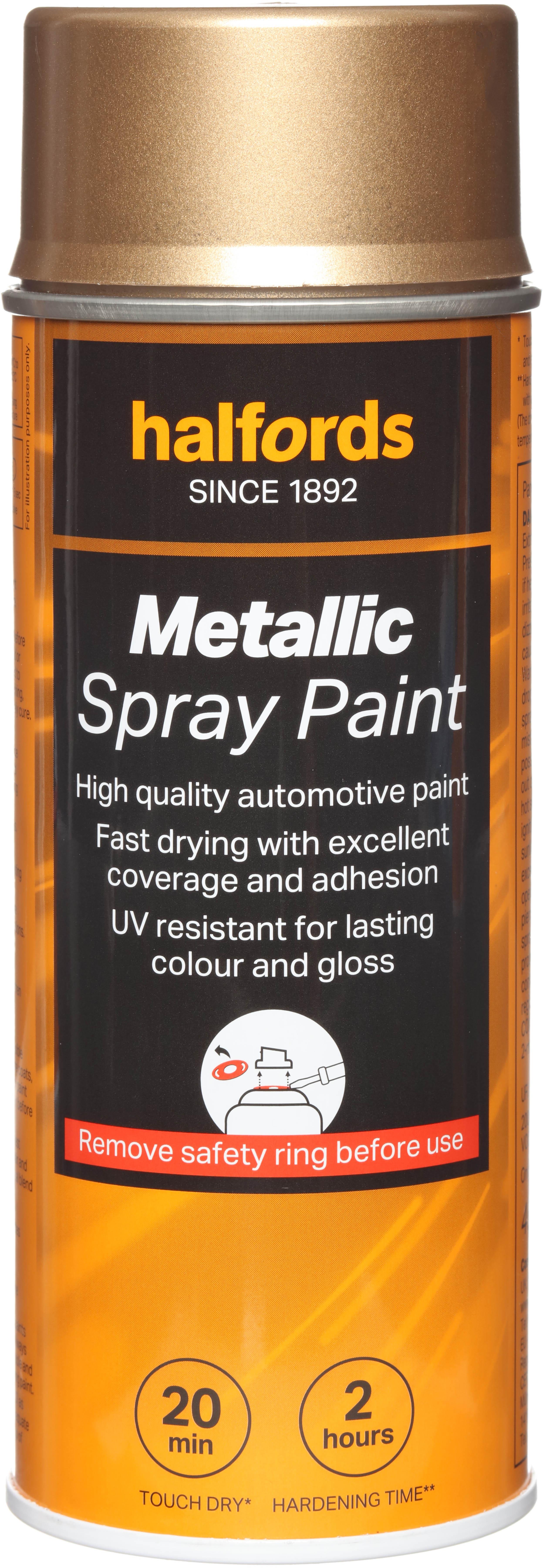 The Halfords Gold Metallic Spray Paint is an automotive-grade spray paint. It’s acrylic-based, and can be used on almost all vehicle finishes as well as steel, aluminium, most plastics, wood & stone.This car spray paint helps you get a professional finish when repairing damage or respraying panels, thanks to the colour match system. We pair your vehicle’s colour code to one of our colour formulas to give you a great match.