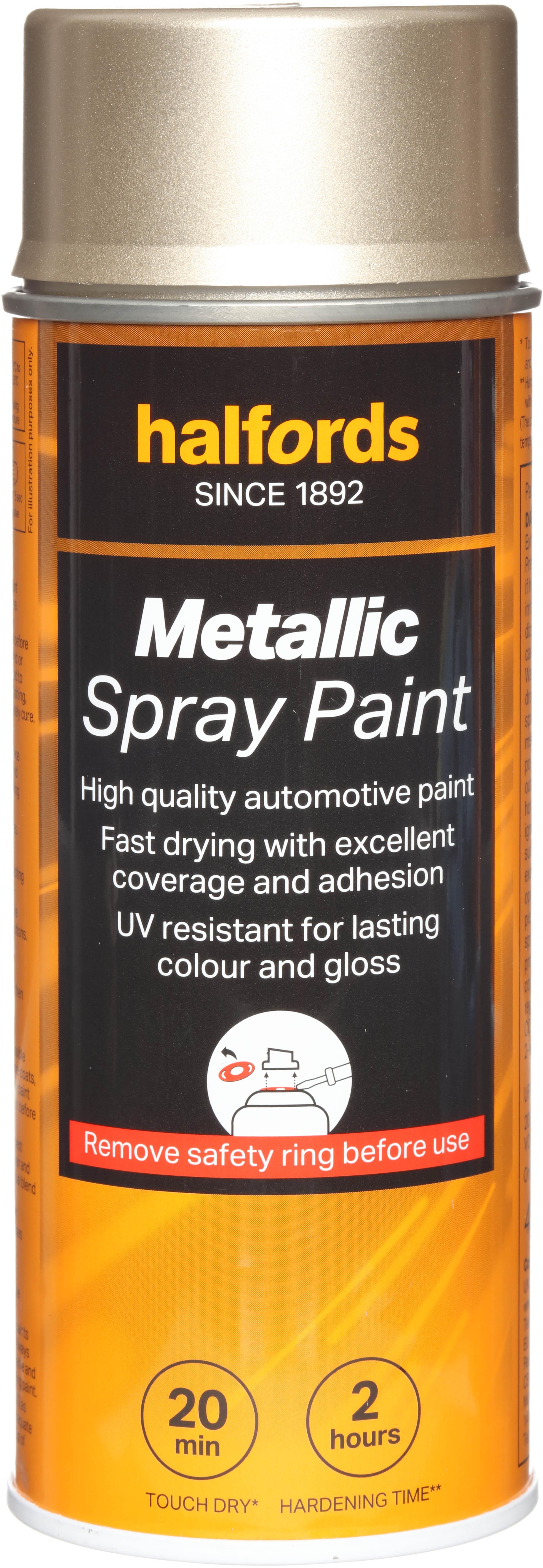 The Halfords Gold Metallic Spray Paint is an automotive-grade spray paint. It’s acrylic-based, and can be used on almost all vehicle finishes as well as steel, aluminium, most plastics, wood & stone.This car spray paint helps you get a professional finish when repairing damage or respraying panels, thanks to the colour match system. We pair your vehicle’s colour code to one of our colour formulas to give you a great match.