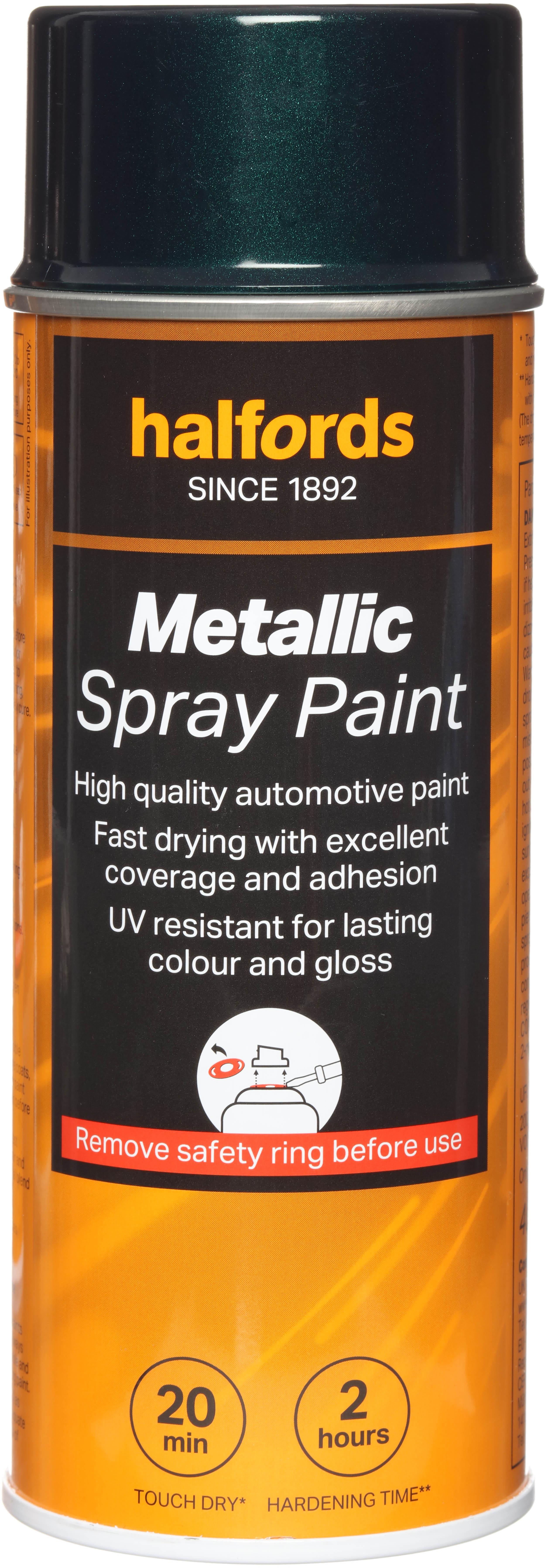 The Halfords Green Metallic Spray Paint is an automotive-grade spray paint. It’s acrylic-based, and can be used on almost all vehicle finishes as well as steel, aluminium, most plastics, wood & stone.This car spray paint helps you get a professional finish when repairing damage or respraying panels, thanks to the colour match system. We pair your vehicle’s colour code to one of our colour formulas to give you a great match.