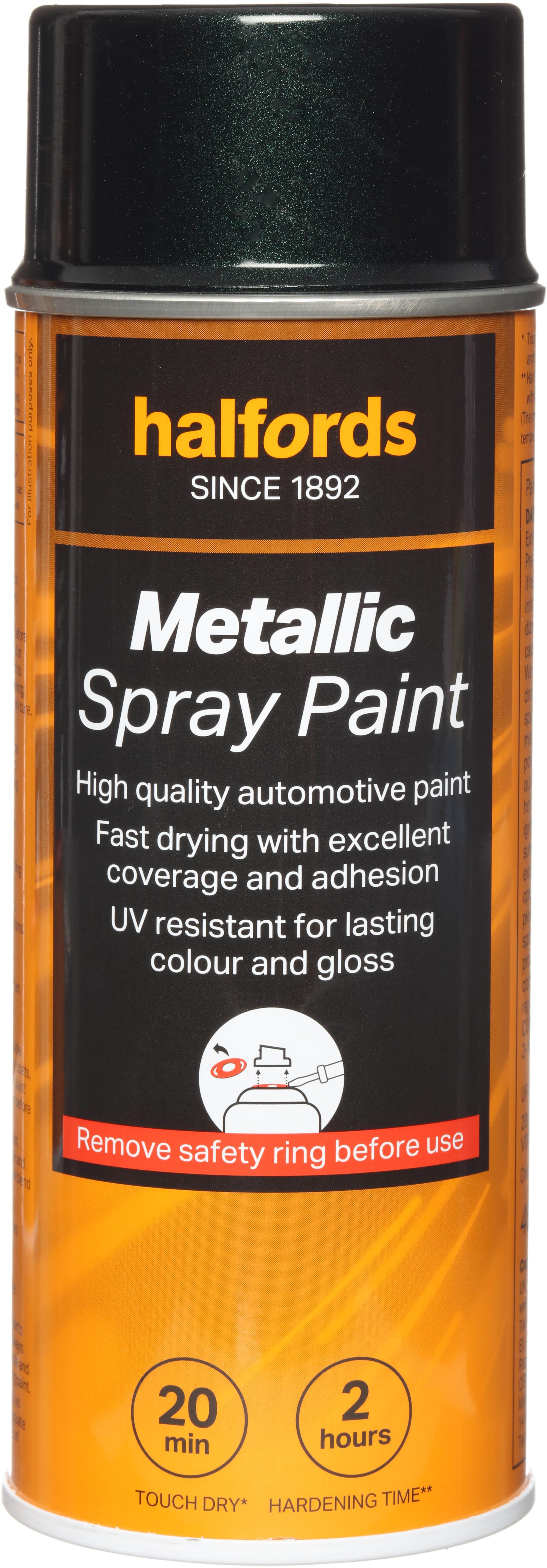 The Halfords Green Metallic Spray Paint is an automotive-grade spray paint. It’s acrylic-based, and can be used on almost all vehicle finishes as well as steel, aluminium, most plastics, wood & stone.This car spray paint helps you get a professional finish when repairing damage or respraying panels, thanks to the colour match system. We pair your vehicle’s colour code to one of our colour formulas to give you a great match.