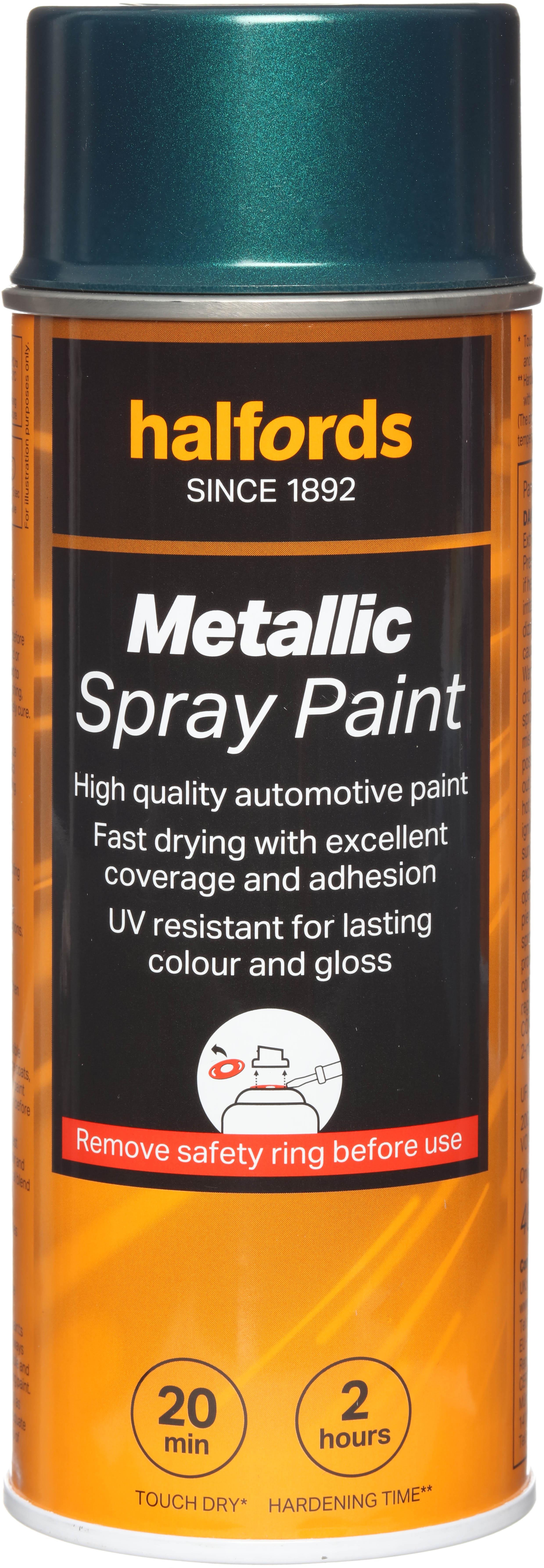 The Halfords Green Metallic Spray Paint is an automotive-grade spray paint. It’s acrylic-based, and can be used on almost all vehicle finishes as well as steel, aluminium, most plastics, wood & stone.This car spray paint helps you get a professional finish when repairing damage or respraying panels, thanks to the colour match system. We pair your vehicle’s colour code to one of our colour formulas to give you a great match.