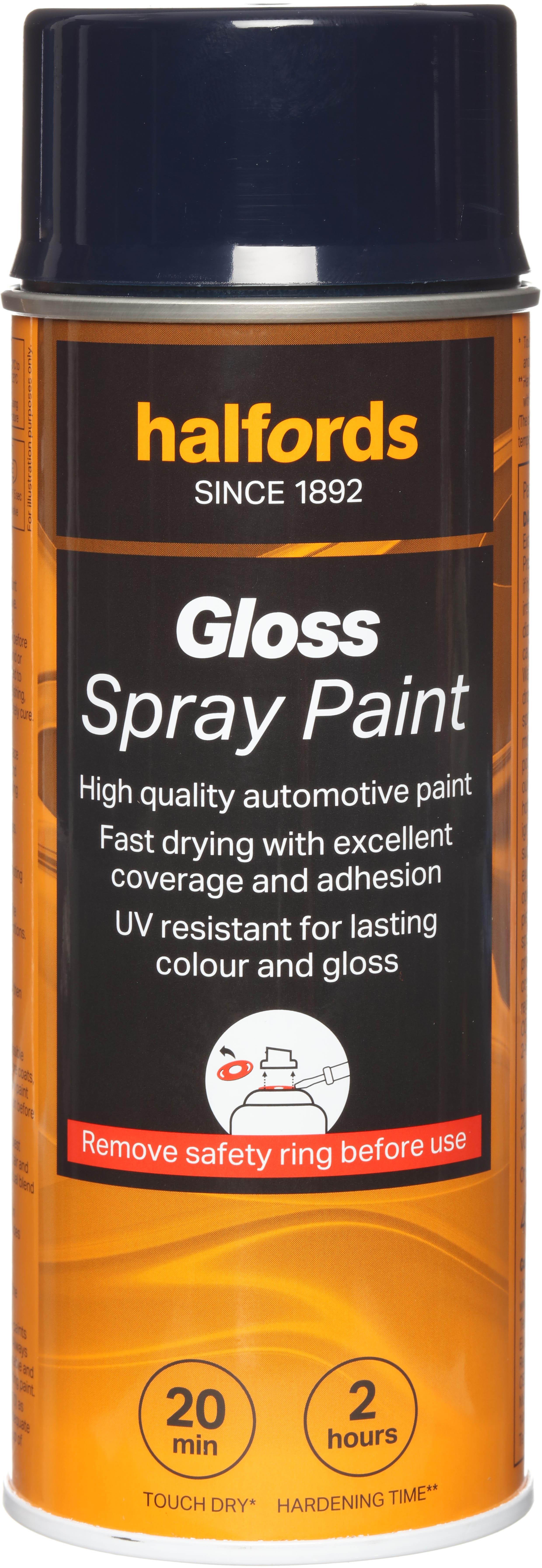 The Halfords Blue Gloss Spray Paint is an automotive-grade spray paint. It’s acrylic-based, and can be used on almost all vehicle finishes as well as steel, aluminium, most plastics, wood & stone.Repair damage and bring faded panels back to life with this car spray paint. It has excellent coverage and filling properties to give you a smooth finish, and adheres flawlessly with the right primer.