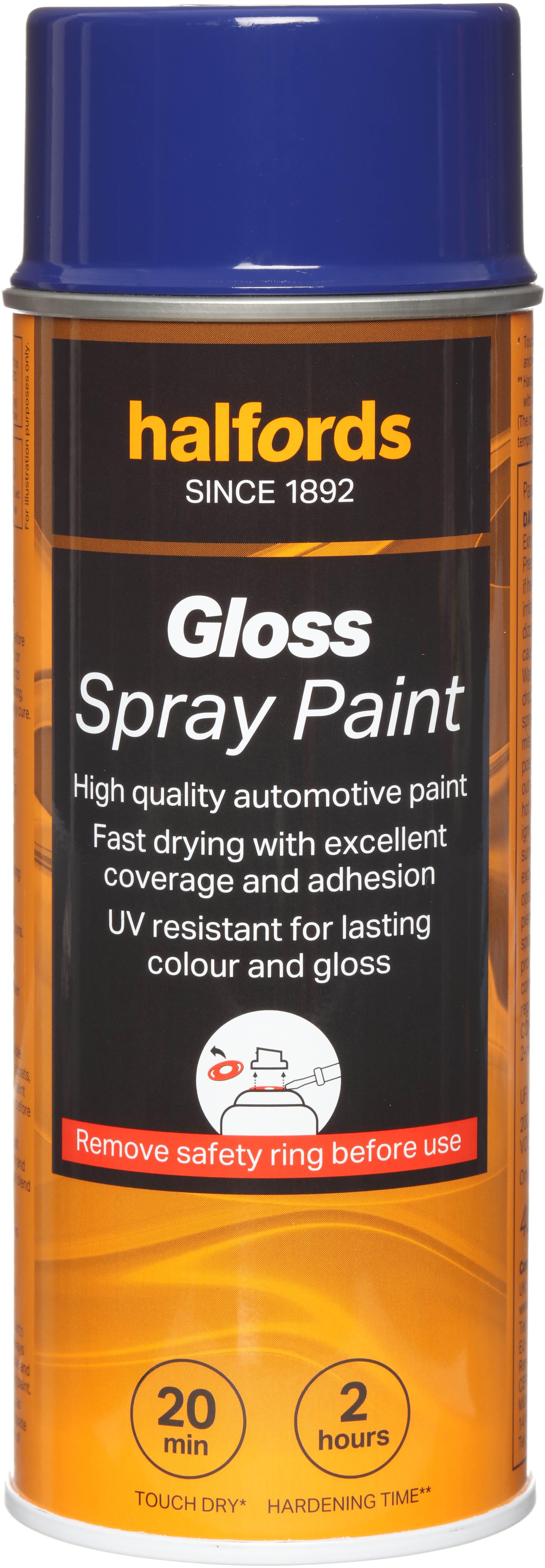 The Halfords Blue Gloss Spray Paint is an automotive-grade spray paint. It’s acrylic-based, and can be used on almost all vehicle finishes as well as steel, aluminium, most plastics, wood & stone.Repair damage and bring faded panels back to life with this car spray paint. It has excellent coverage and filling properties to give you a smooth finish, and adheres flawlessly with the right primer.