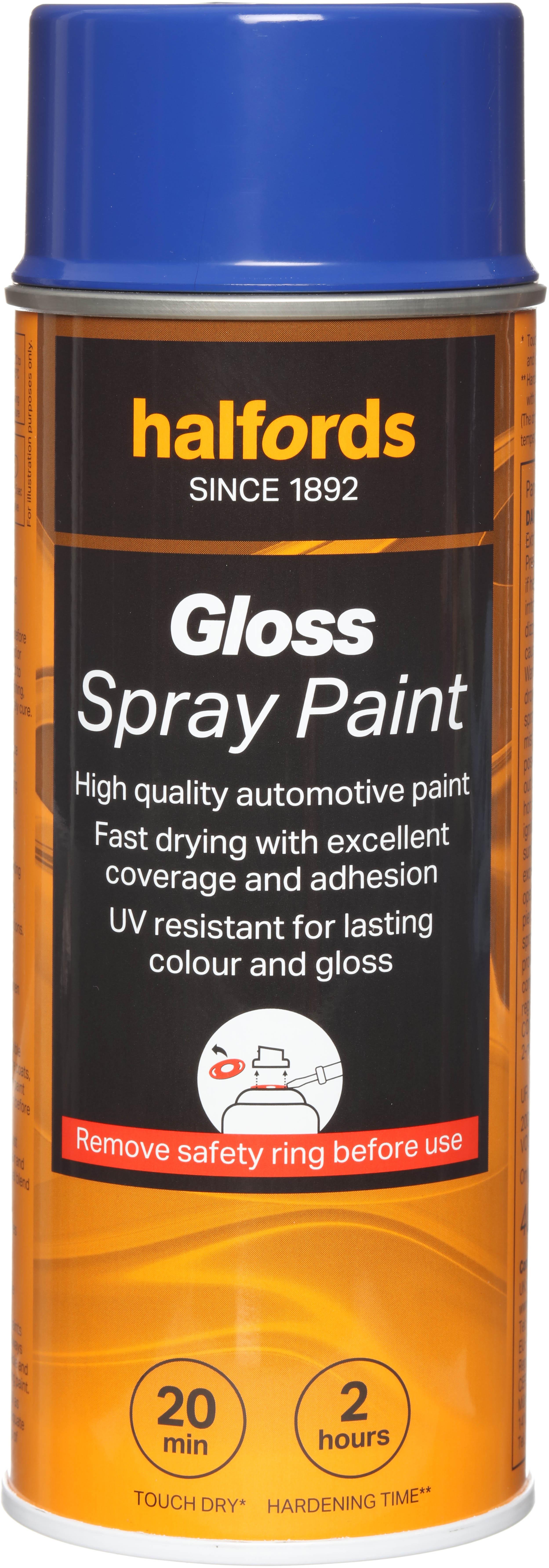 The Halfords Blue Gloss Spray Paint is an automotive-grade spray paint. It’s acrylic-based, and can be used on almost all vehicle finishes as well as steel, aluminium, most plastics, wood & stone.