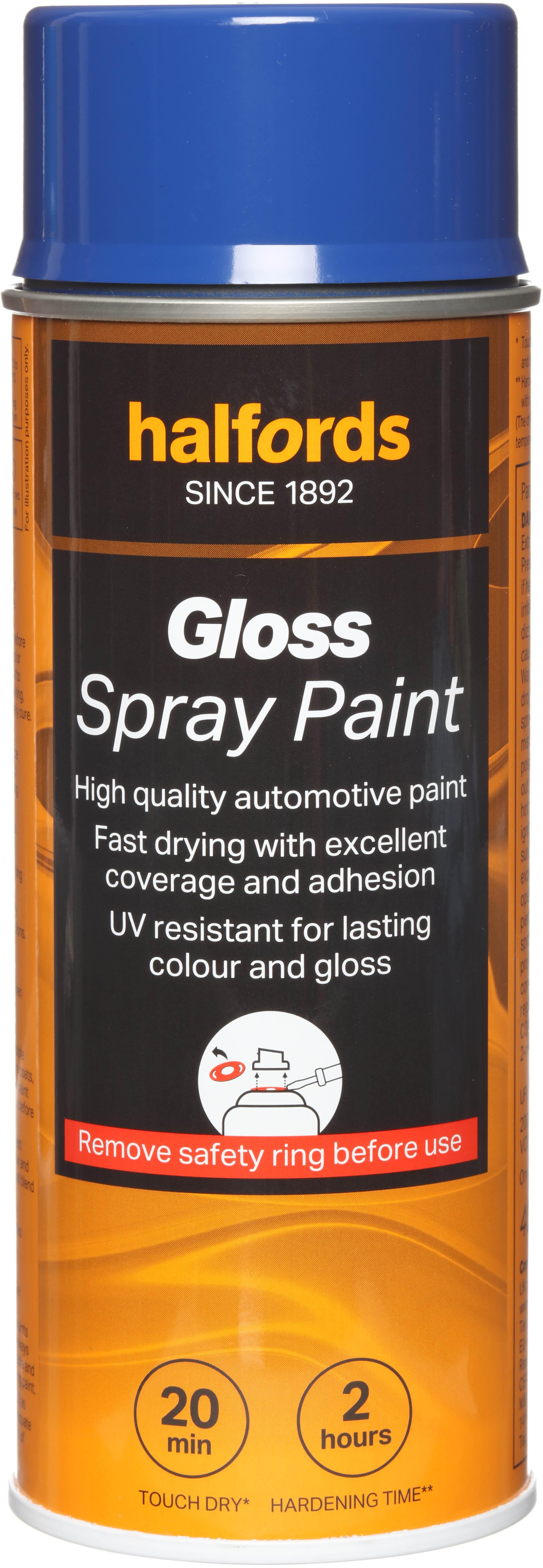 The Halfords Blue Gloss Spray Paint is an automotive-grade spray paint. It’s acrylic-based, and can be used on almost all vehicle finishes as well as steel, aluminium, most plastics, wood & stone.Repair damage and bring faded panels back to life with this car spray paint. It has excellent coverage and filling properties to give you a smooth finish, and adheres flawlessly with the right primer.