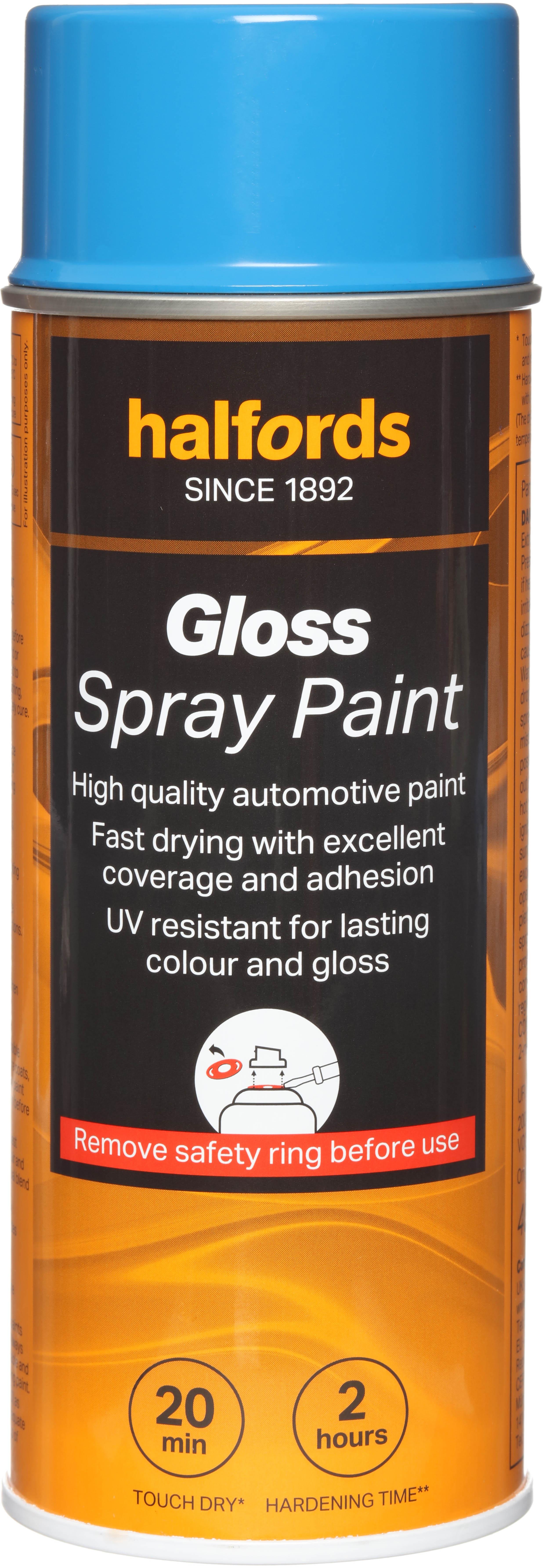 The Halfords Blue Gloss Spray Paint is an automotive-grade spray paint. It’s acrylic-based, and can be used on almost all vehicle finishes as well as steel, aluminium, most plastics, wood & stone.Repair damage and bring faded panels back to life with this car spray paint. It has excellent coverage and filling properties to give you a smooth finish, and adheres flawlessly with the right primer.
