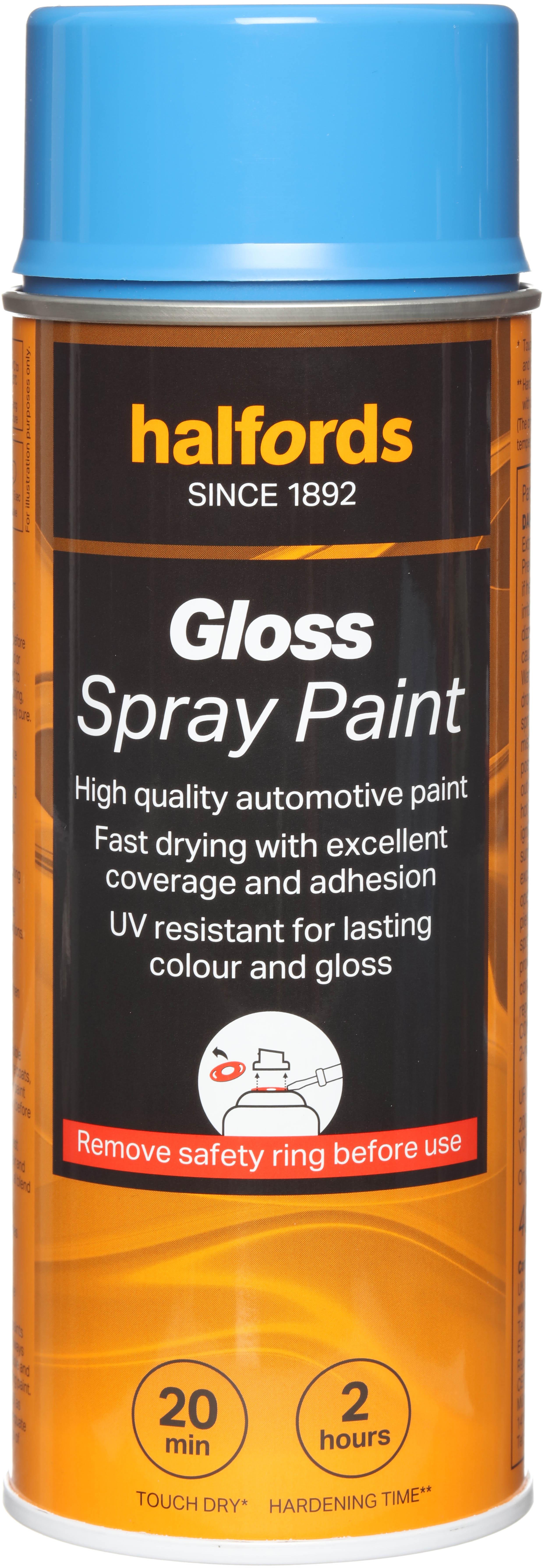 The Halfords Blue Gloss Spray Paint is an automotive-grade spray paint. It’s acrylic-based, and can be used on almost all vehicle finishes as well as steel, aluminium, most plastics, wood & stone.Repair damage and bring faded panels back to life with this car spray paint. It has excellent coverage and filling properties to give you a smooth finish, and adheres flawlessly with the right primer.