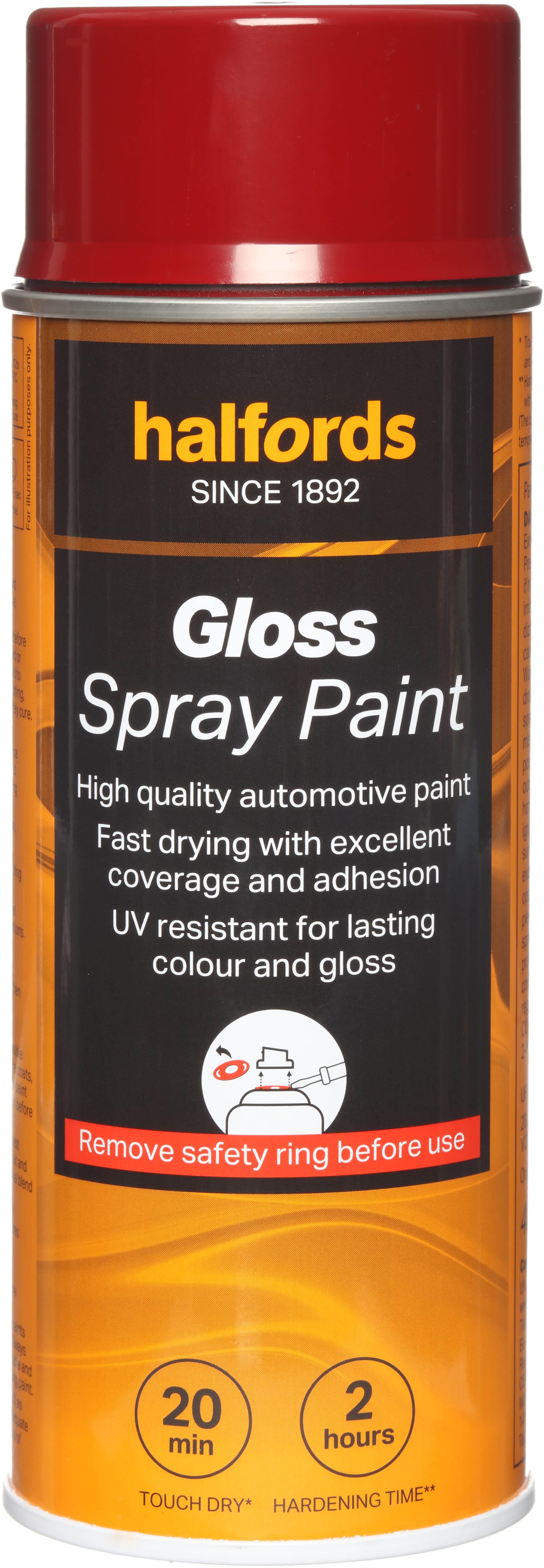 The Halfords Red Gloss Spray Paint is a multi-use automotive-grade spray paint, which can be safely used on surfaces like steel, aluminium, wood, stone, and most plastics with the right primer.This high-quality paint is fast-drying to make the job as easy and mess-free as possible, giving you excellent coverage and adhesion when used with a primer.