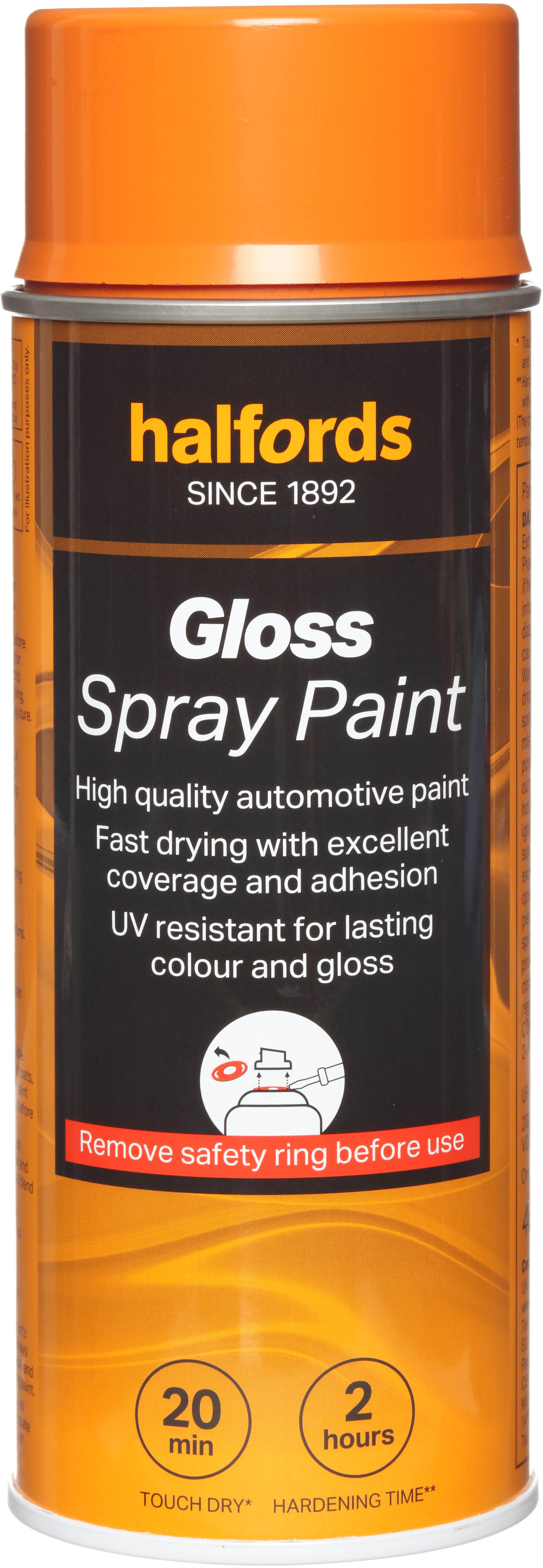 The Halfords Orange Gloss Spray Paint is an automotive-grade spray paint. It’s acrylic-based, and can be used on almost all vehicle finishes as well as steel, aluminium, most plastics, wood & stone.Finding the right colour on your own can be tough, which is why we use a colour match system. We match your car’s colour code to the right can, so you get a professional finish.