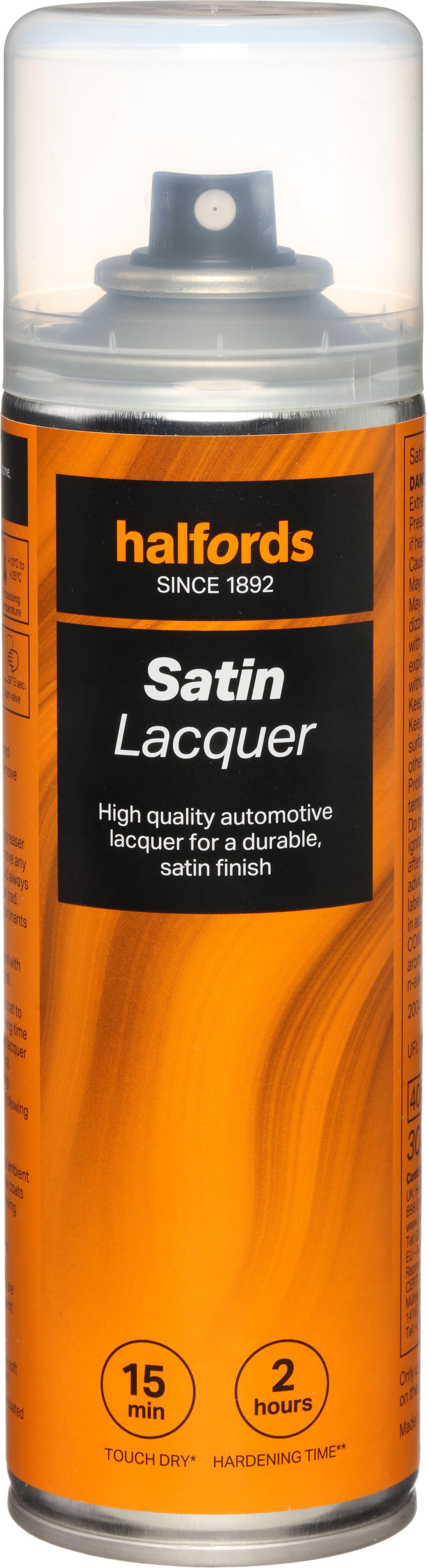 The Halfords Satin Lacquer 300ml is the perfect final step of your car body repair, leaving a durable, soft-satin finish to your paintwork.This clear car lacquer is to be applied as a final coat to lock in your finish and leave a silky, satin shine. It’s temperature-resistant up to 110°C, and can be applied to metal, aluminium, wood, stone, and various types of plastic (with the use of an appropriate primer and colour coat).