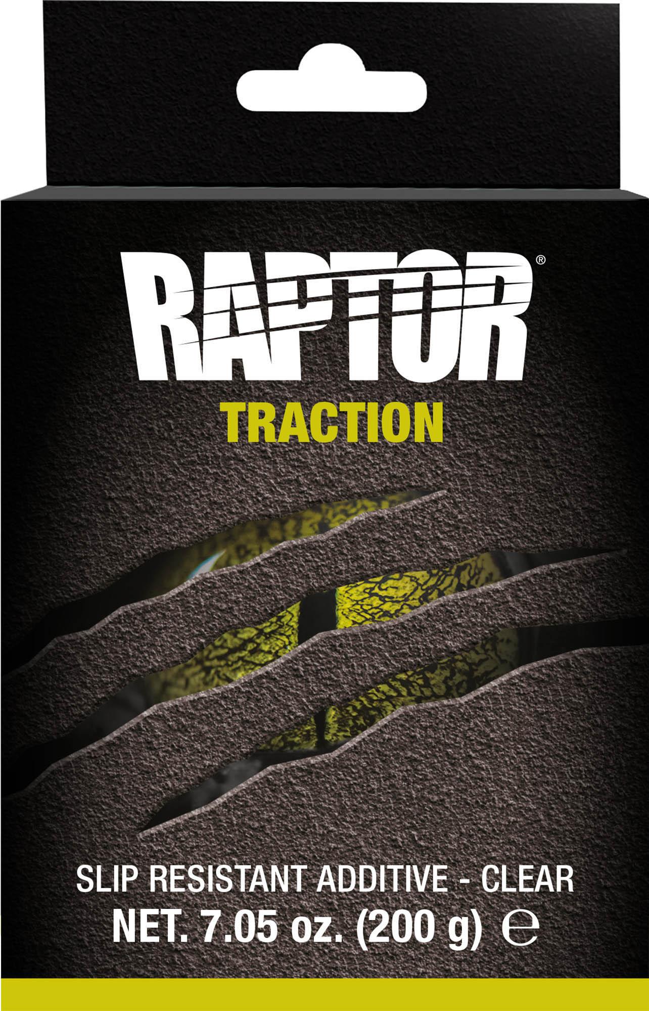 RAPTOR TRACTION ANTI-SLIP ADDITIVE can be added directly into RAPTOR Tough and Tintable Protective Coating bottles prior to spraying. RAPTOR TRACTION is packaged in a convenient 200g resealable bag and will fill one bottle of RAPTOR for a typical slip-resistant application.